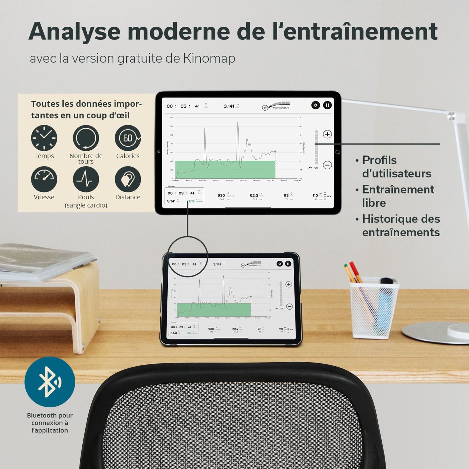 - Interface Bluetooth pour un entraînement intelligent avec des applications de fitness gratuites comme Kinomap