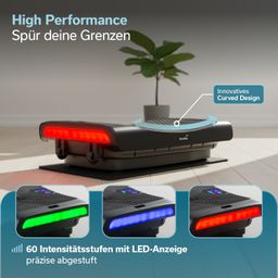 Les bandes LED situées des deux côtés de la plateforme vibrante constituent un petit plus très appréciable. Les LED Power Lights indiquent l'intensité d'entraînement sélectionnée. Entre les niveaux d'entraînement 1 et 20, les bandes LED s'allument en vert. De 21 à 40, elles s'allument en violet et de 41 à 60, elles s'allument en rouge.