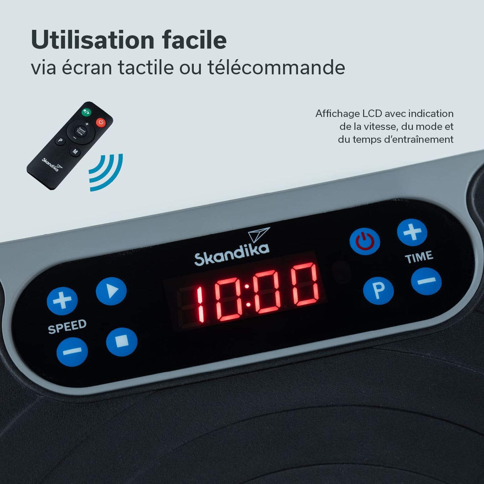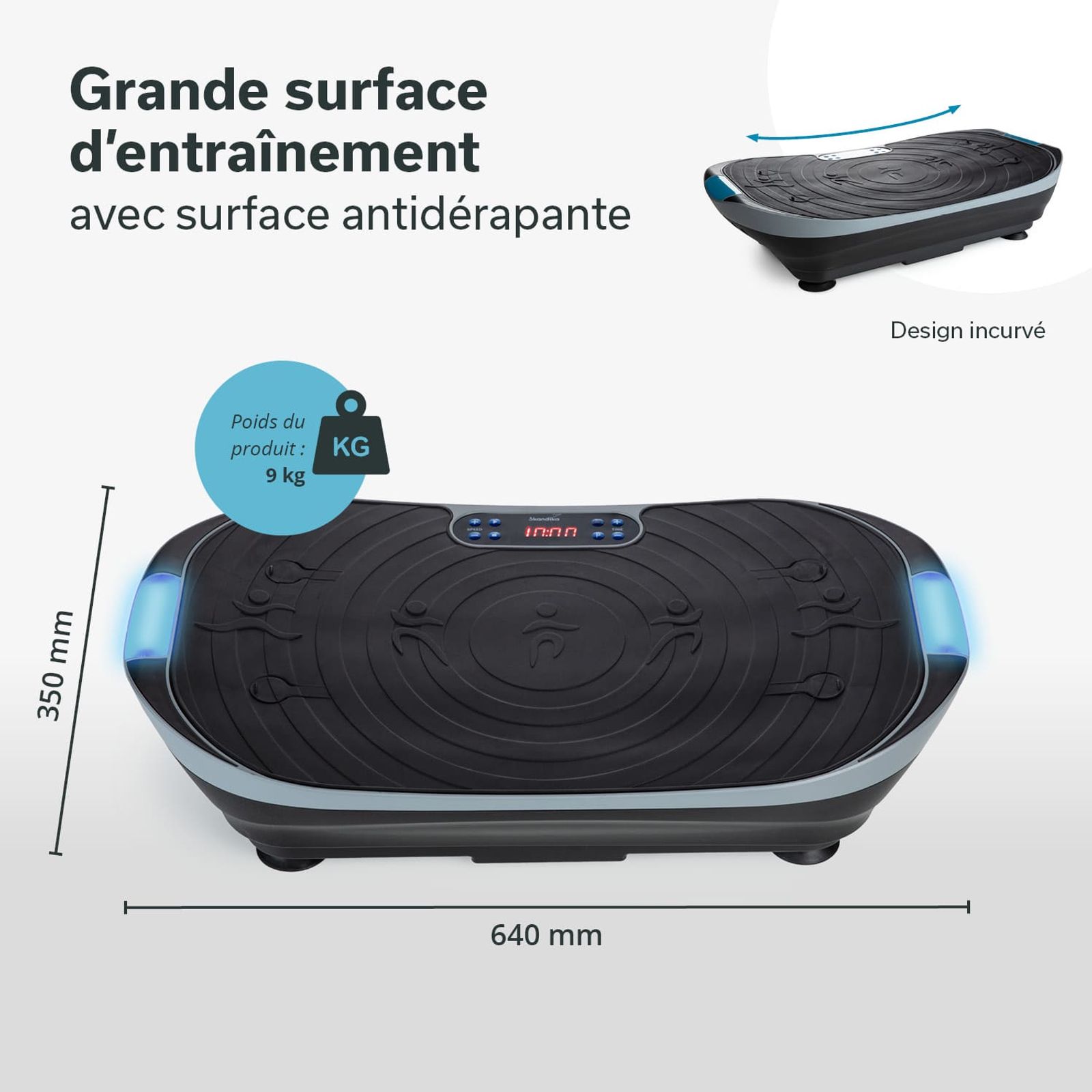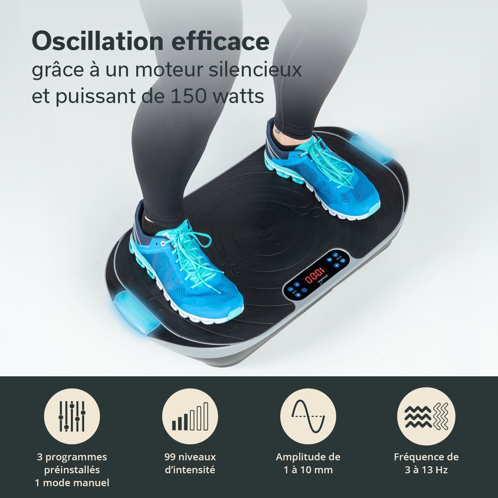 La puissance nécessaire est fournie par un moteur puissant de 150 watts, qui offre au total 99 niveaux d'intensité avec une fréquence d'oscillation entre 3 et 13 Hz. Ainsi, la musculature profonde est également activée lors de l'entraînement.
