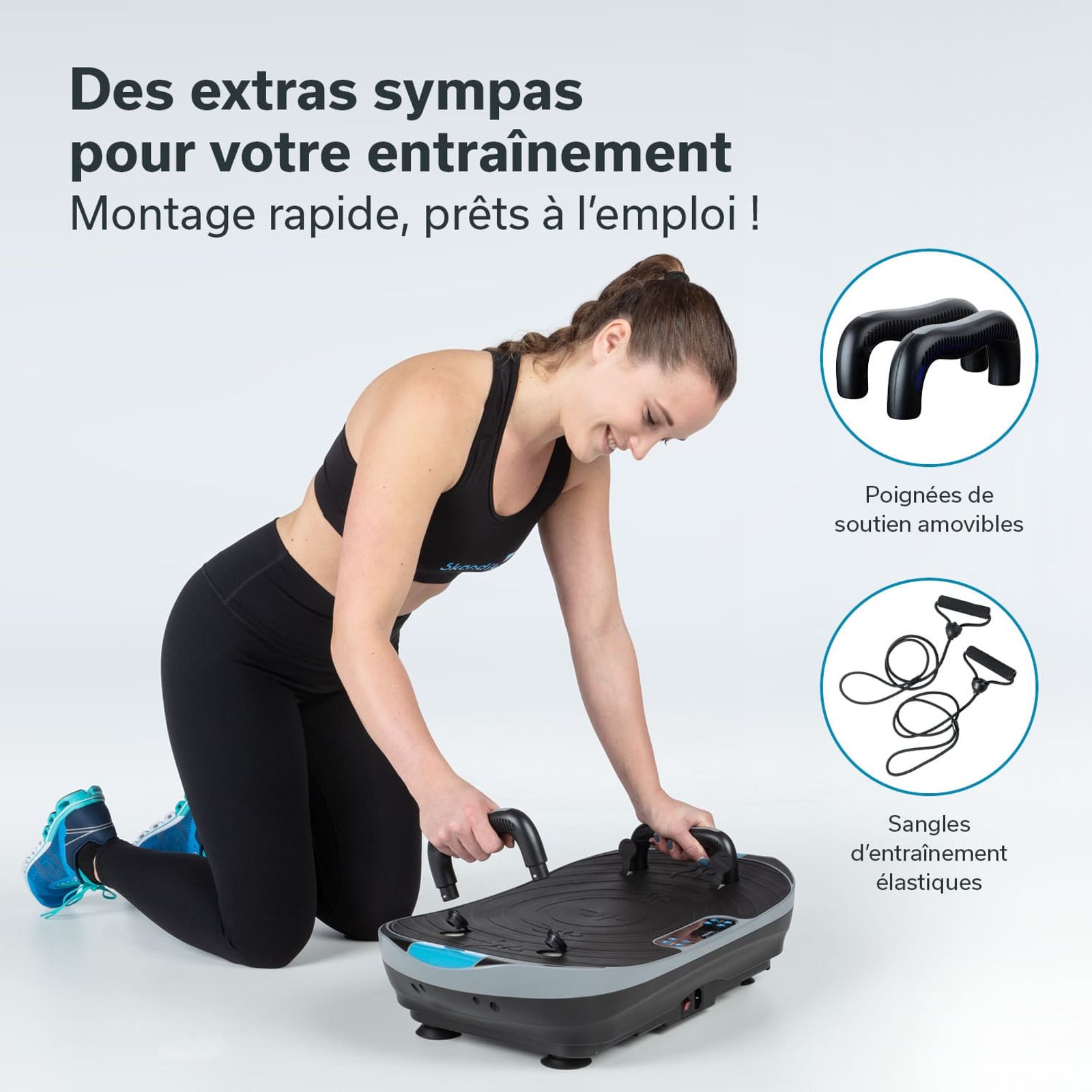 La plateforme vibrante V2 de Skandika allie une technologie innovante à un design bien pensé et permet ainsi un entraînement efficace de tout le corps à domicile. C'est un appareil de fitness compact avec les avantages de poignées d'entraînement supplémentaires et de sangles de résistance élastiques qui soutiennent un entraînement efficace et polyvalent pour l'ensemble du corps à tout moment et partout.