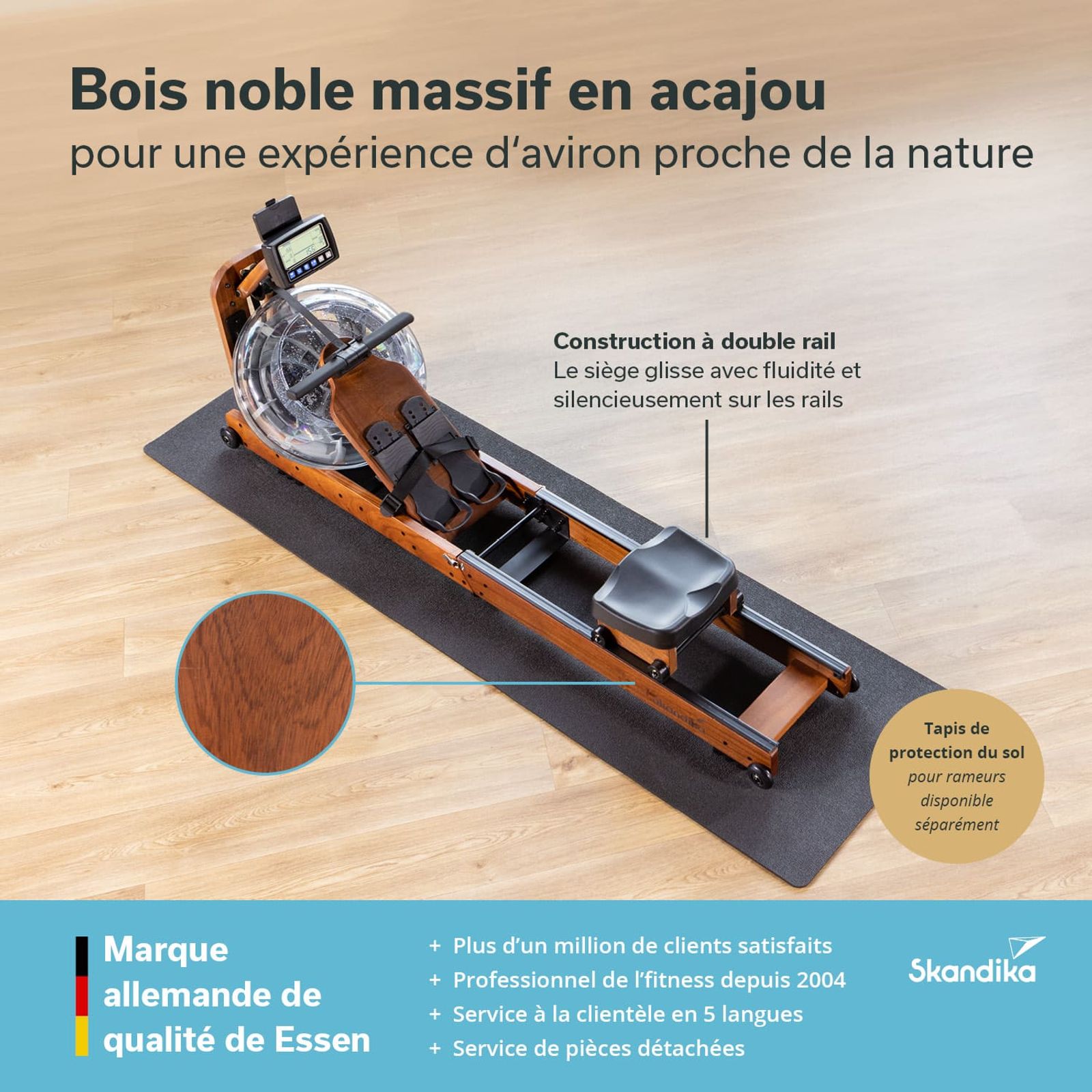 - Double rail robuste et châssis en acajou