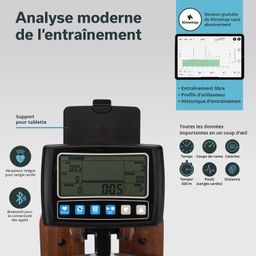Durch die 45 Grad aufgestellten Ruderblätter wird ein größerer Widerstand erzeugt, der sich in den Trainingsergebnissen widerspiegelt. Das harmonische Trainingsgeräusch des Wassers schafft eine natürliche Atmosphäre und die geschmeidige Bewegung führt zu einem fließenden Trainingsablauf.