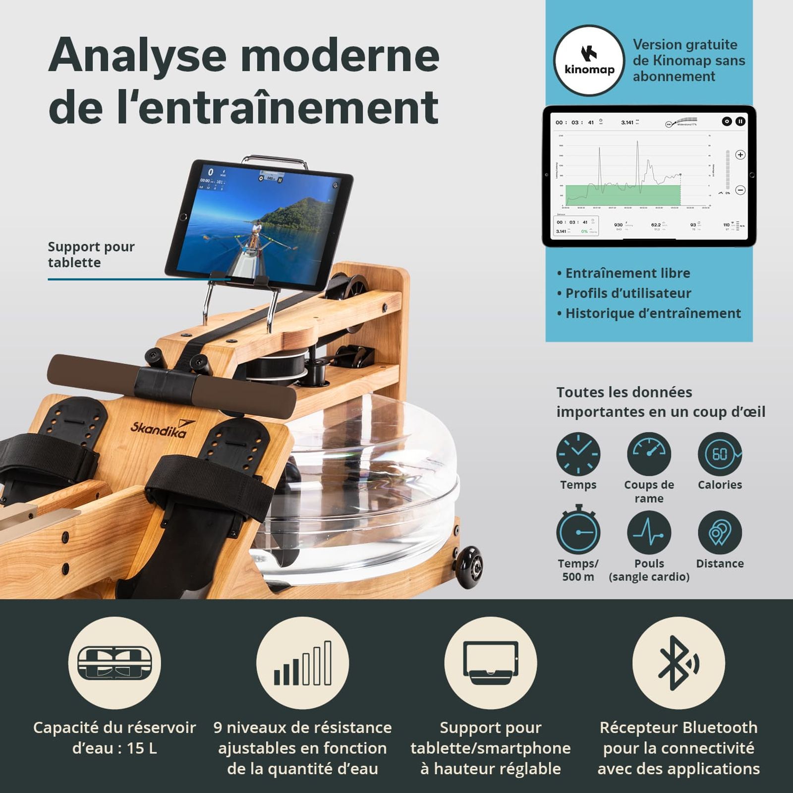 - Interface Bluetooth pour se connecter à l'application Training Data ou à Kinomap
