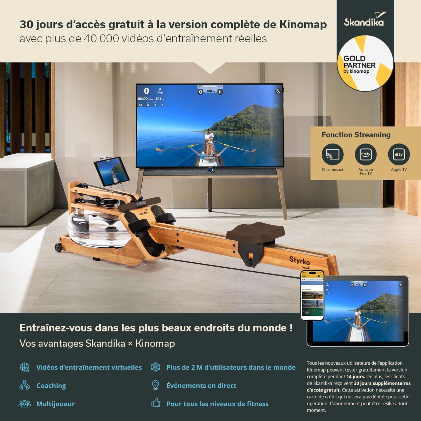 - Les clients Skandika utilisent Kinomap gratuitement pendant 30 jours pour plus de plaisir d'entraînement virtuel