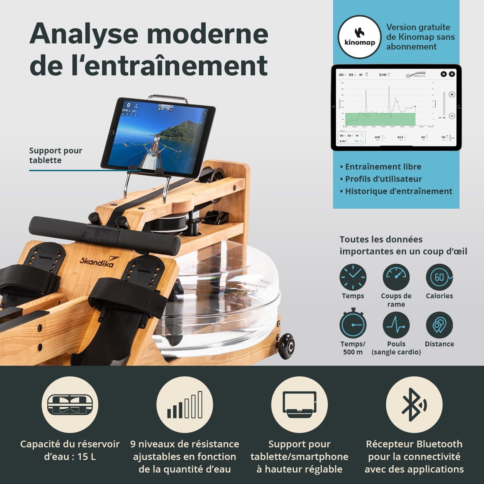 - Interface Bluetooth pour se connecter à l'application Training Data ou à Kinomap