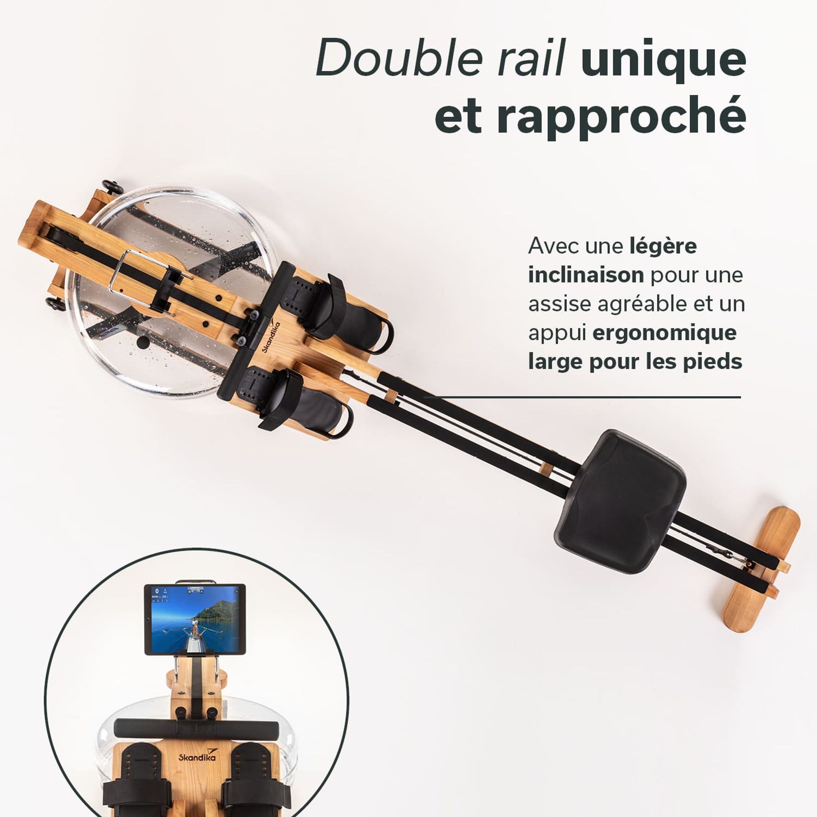 Die vollkommen neuartige, zusammenliegende Doppelrail ermöglicht einen beckenbreiten Stand der Füße. Das Ergebnis: ergonomisch korrekte Bewegungsabläufe für beschwerdefreies Absolvieren langer und intensiver Einheiten. Passend dazu: ein ergonomisch geformter, gepolsterter Sitz und der an die Handflächen angepasste Rudergriff mit Anti-Rutsch-Beschichtung.