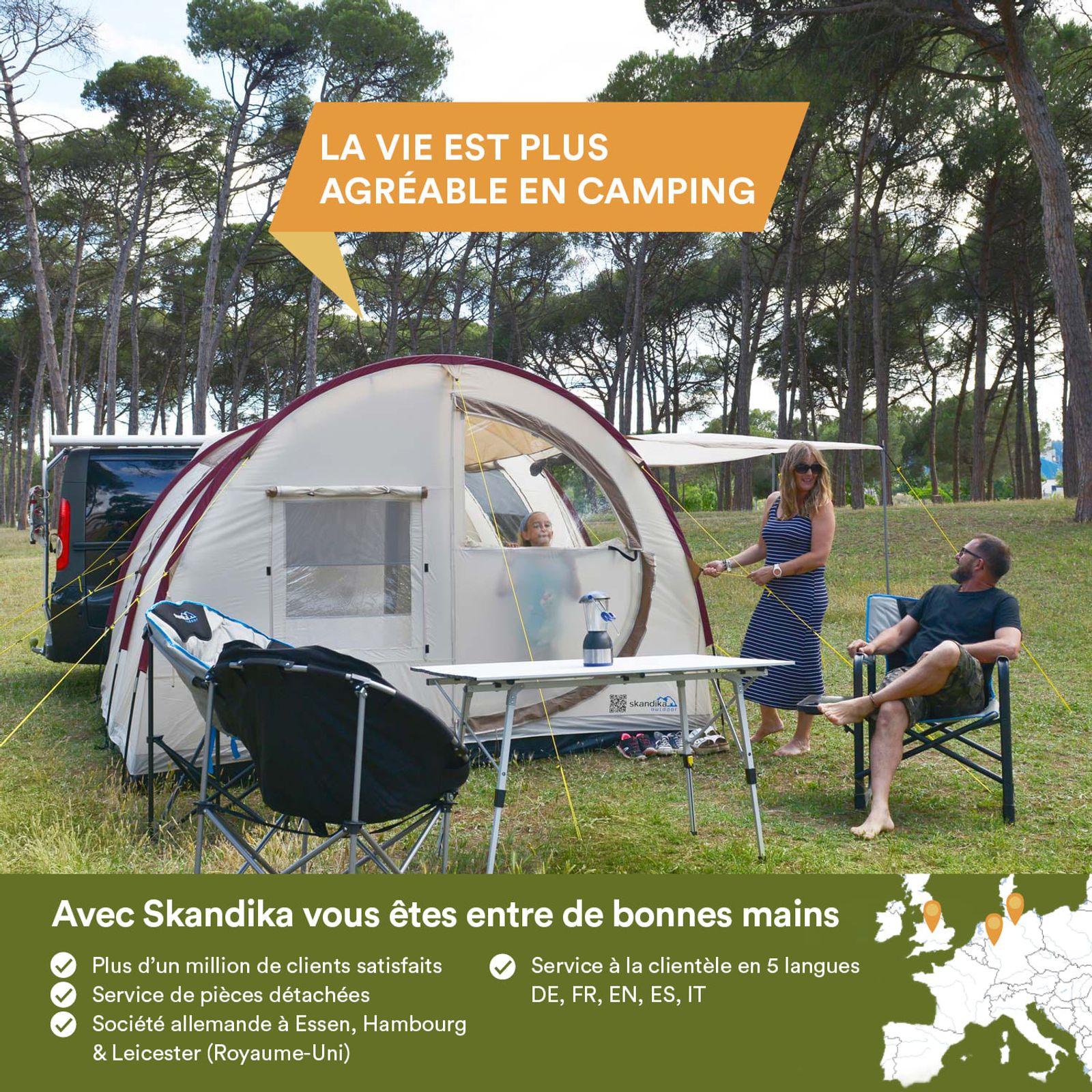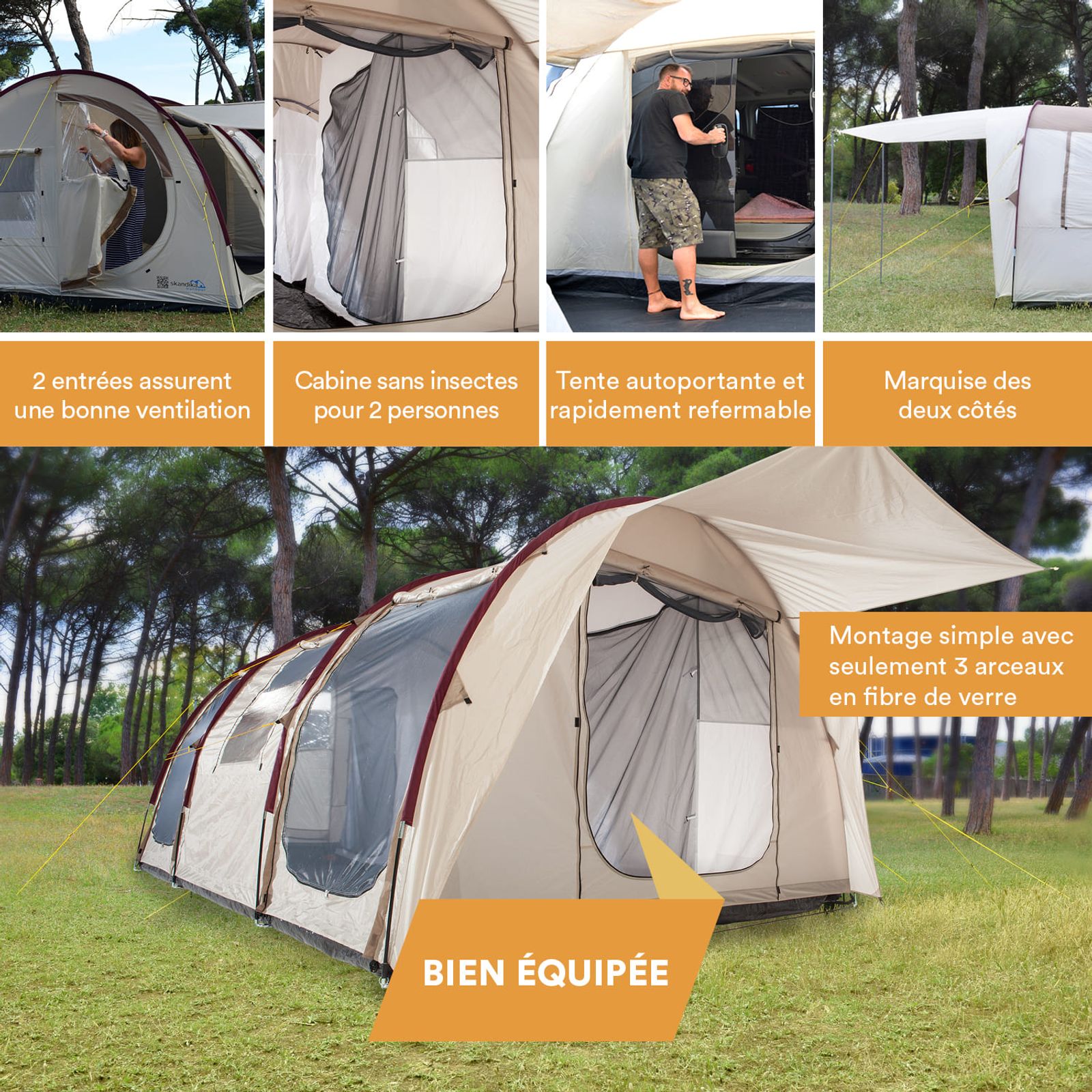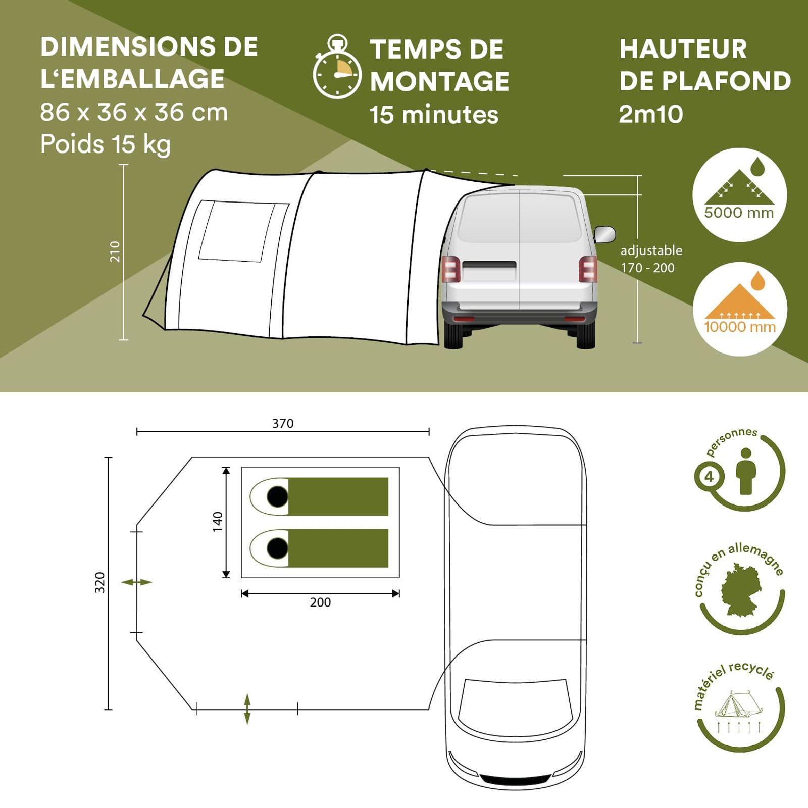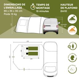 - Matériau (cabine de couchage) : 100% polyester, respirant