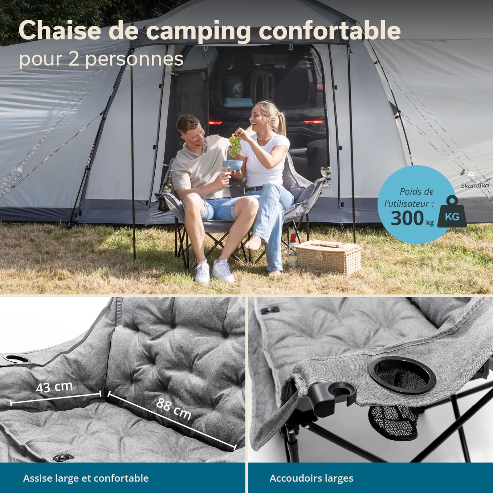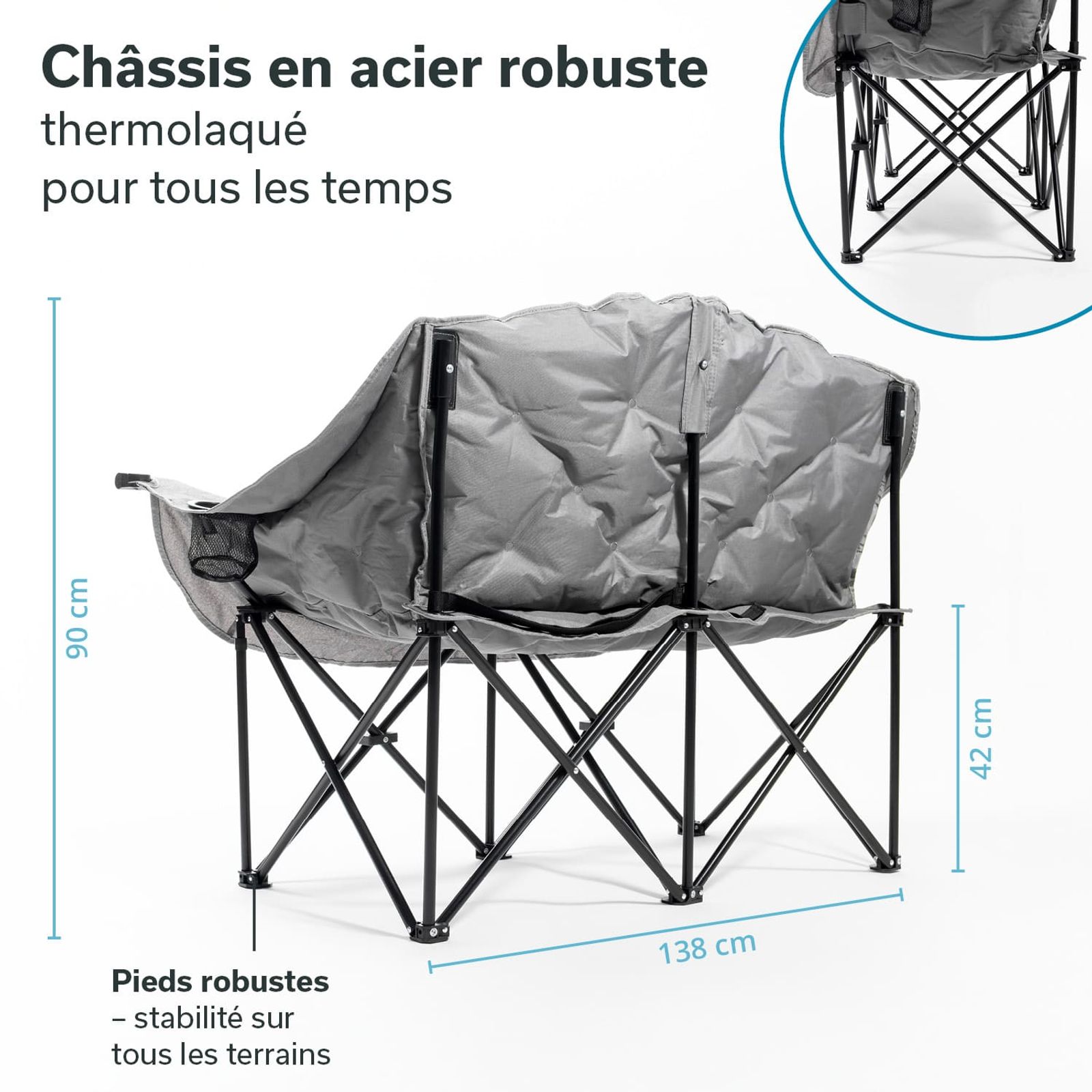 Chaise de camping pour deux personnes avec rembourrage moelleux