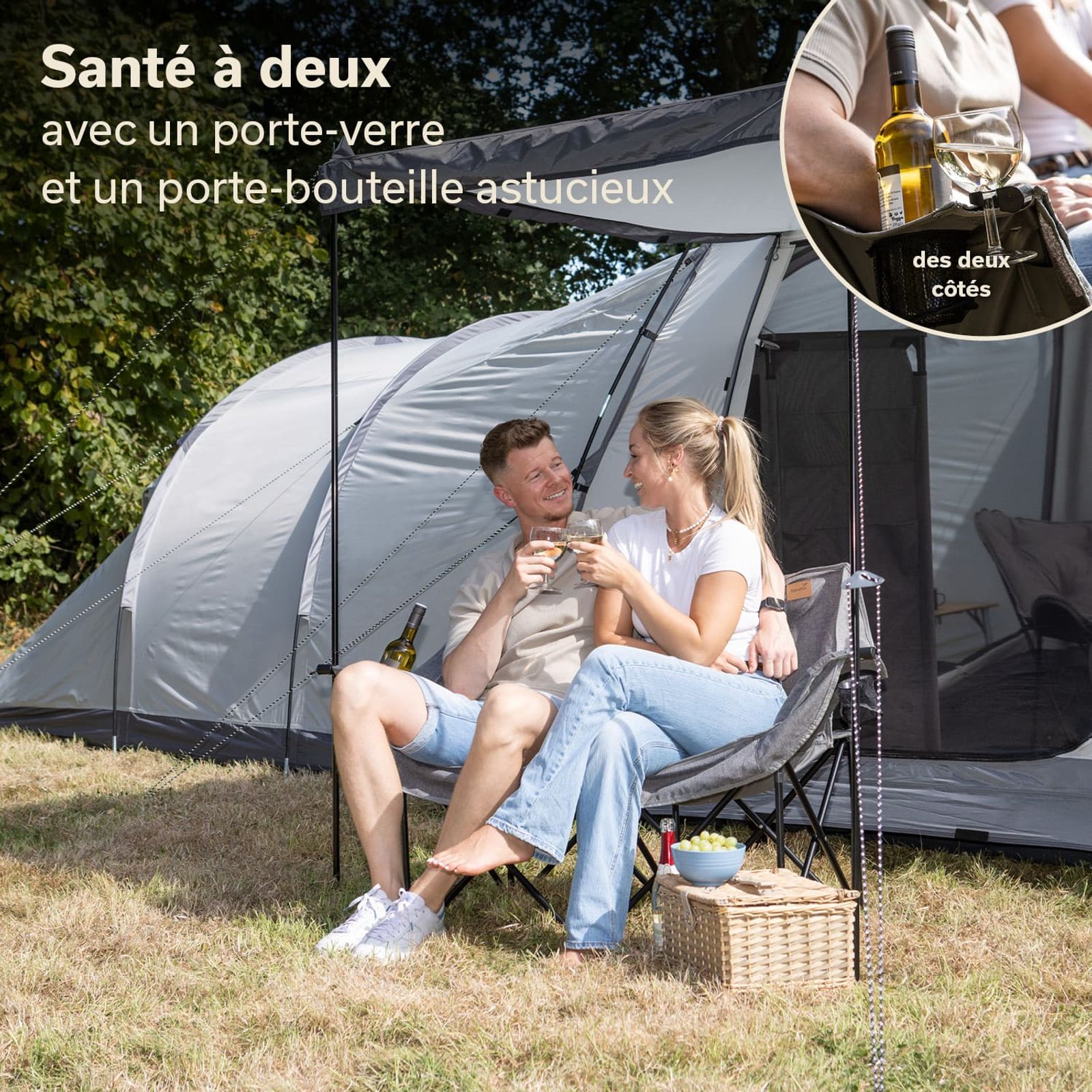 Que vous soyez à deux ou seul, cette chaise de camping double vous invite à vous détendre partout où vous allez.