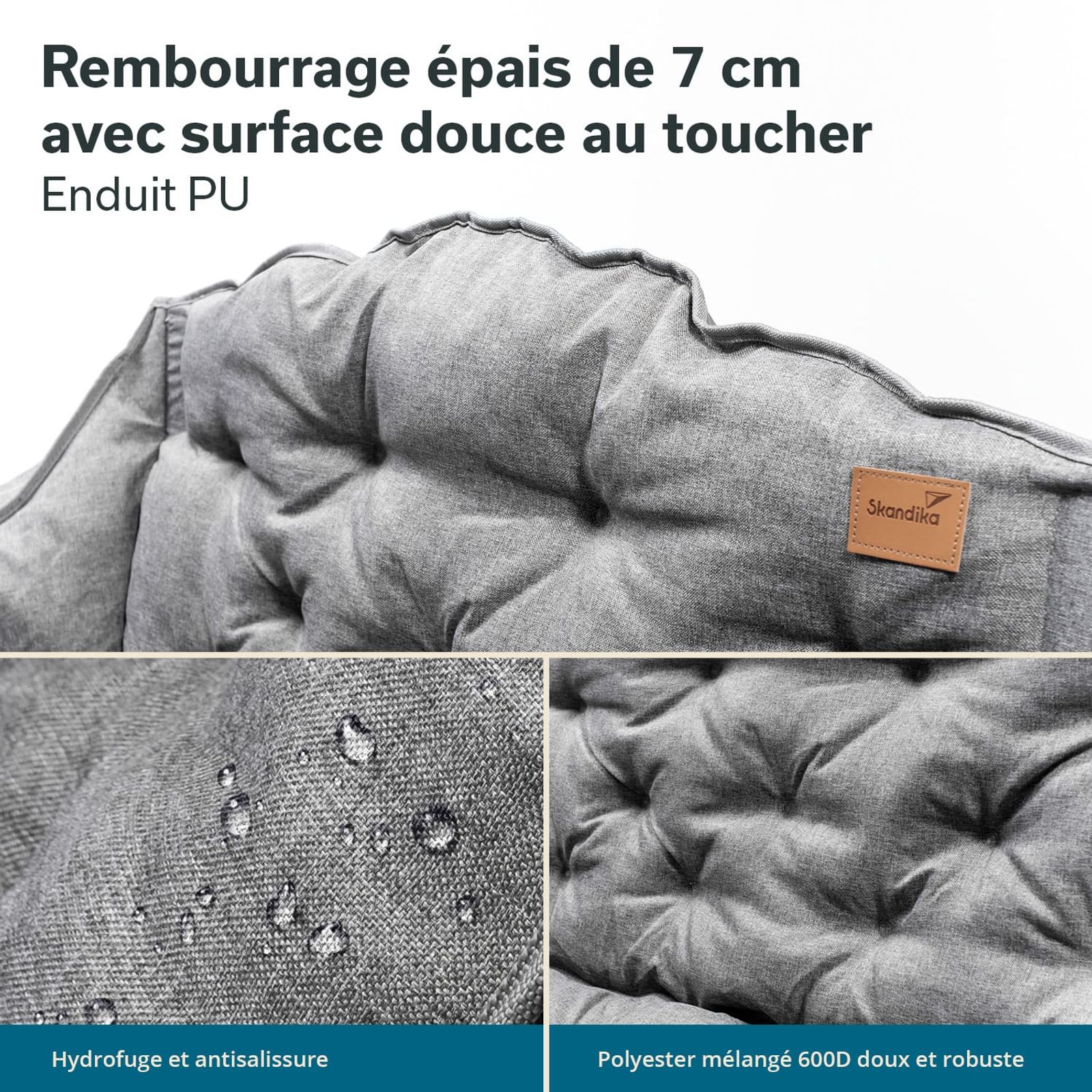 - Banquette double rembourrée pour deux personnes, pour des soirées confortables à deux en plein air