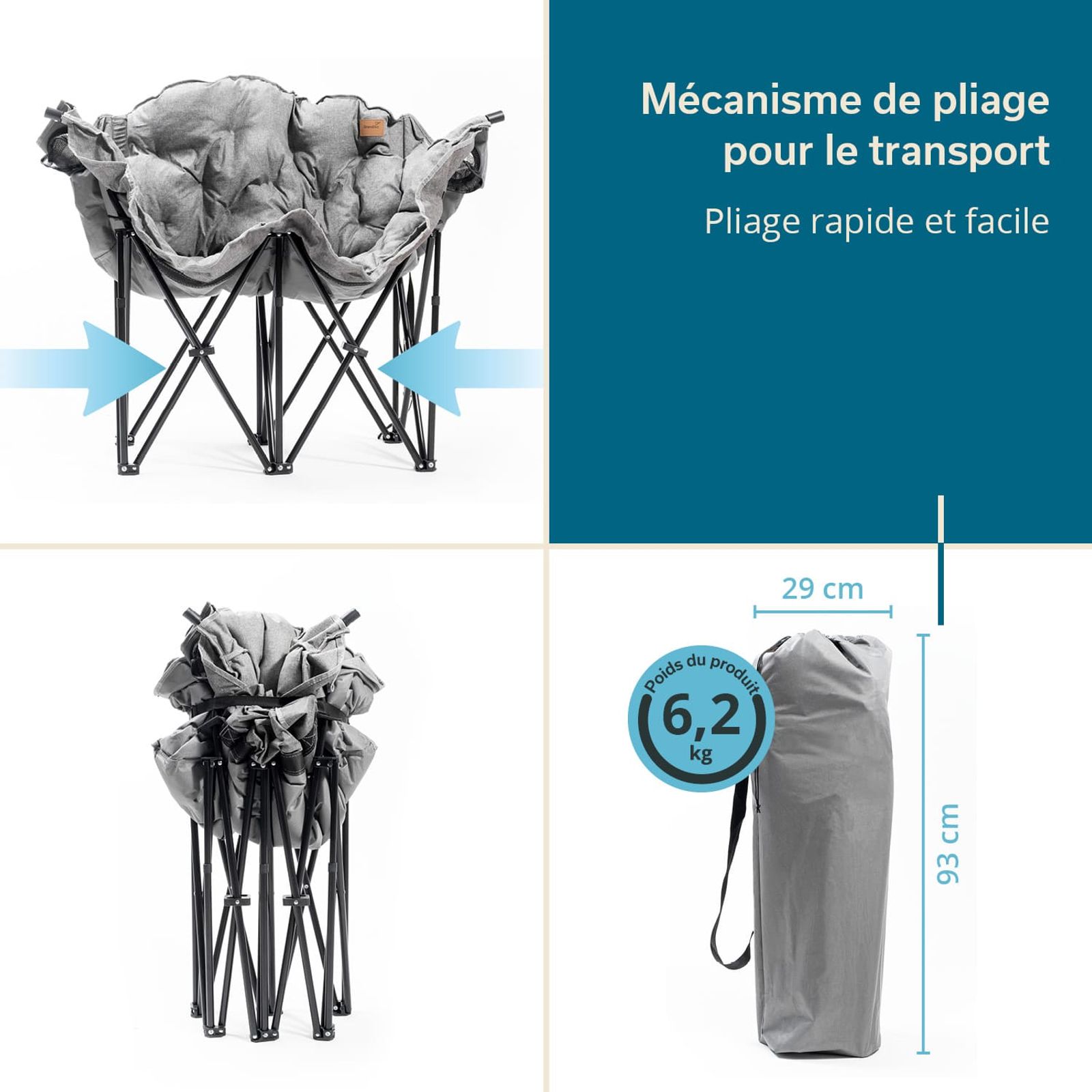 Rembourrage moelleux et accoudoirs larges – pour un confort maximal lors de toutes vos aventures en plein air.
