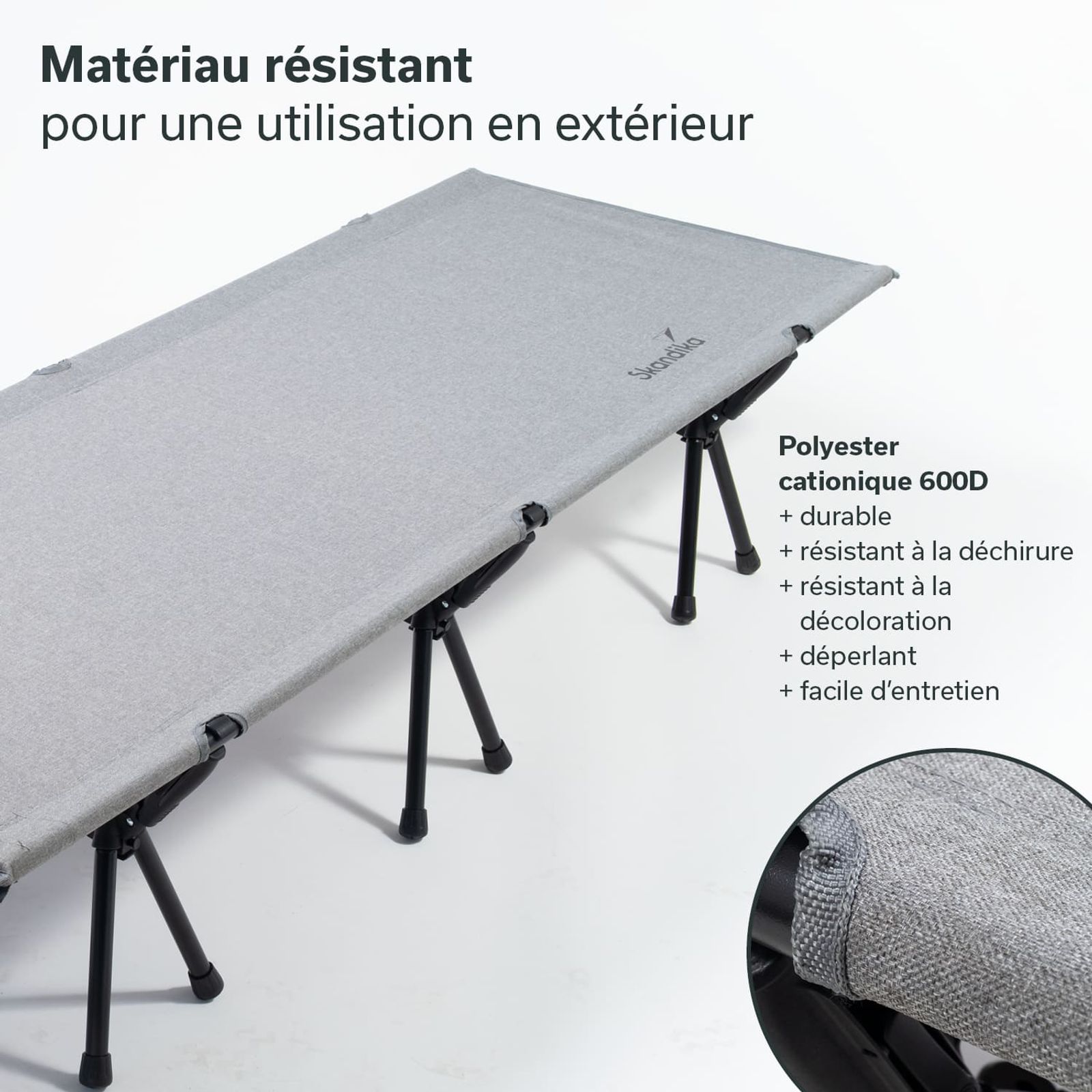 - Lit de camp spacieux et confortable avec une surface de couchage de 192 × 66 cm