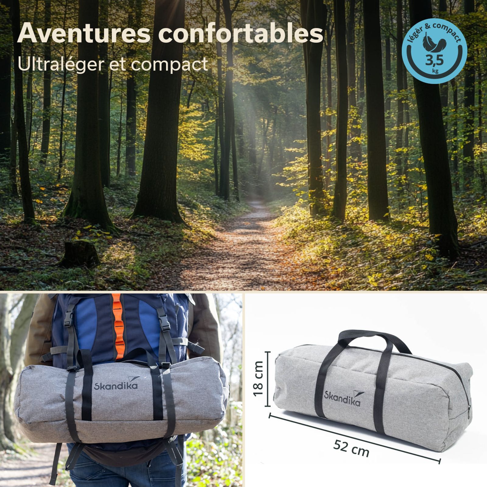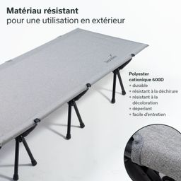 Un sac de transport pratique est fourni pour un rangement sûr et un transport facile. Ainsi, le lit de camp est toujours prêt pour une nouvelle aventure en camping !