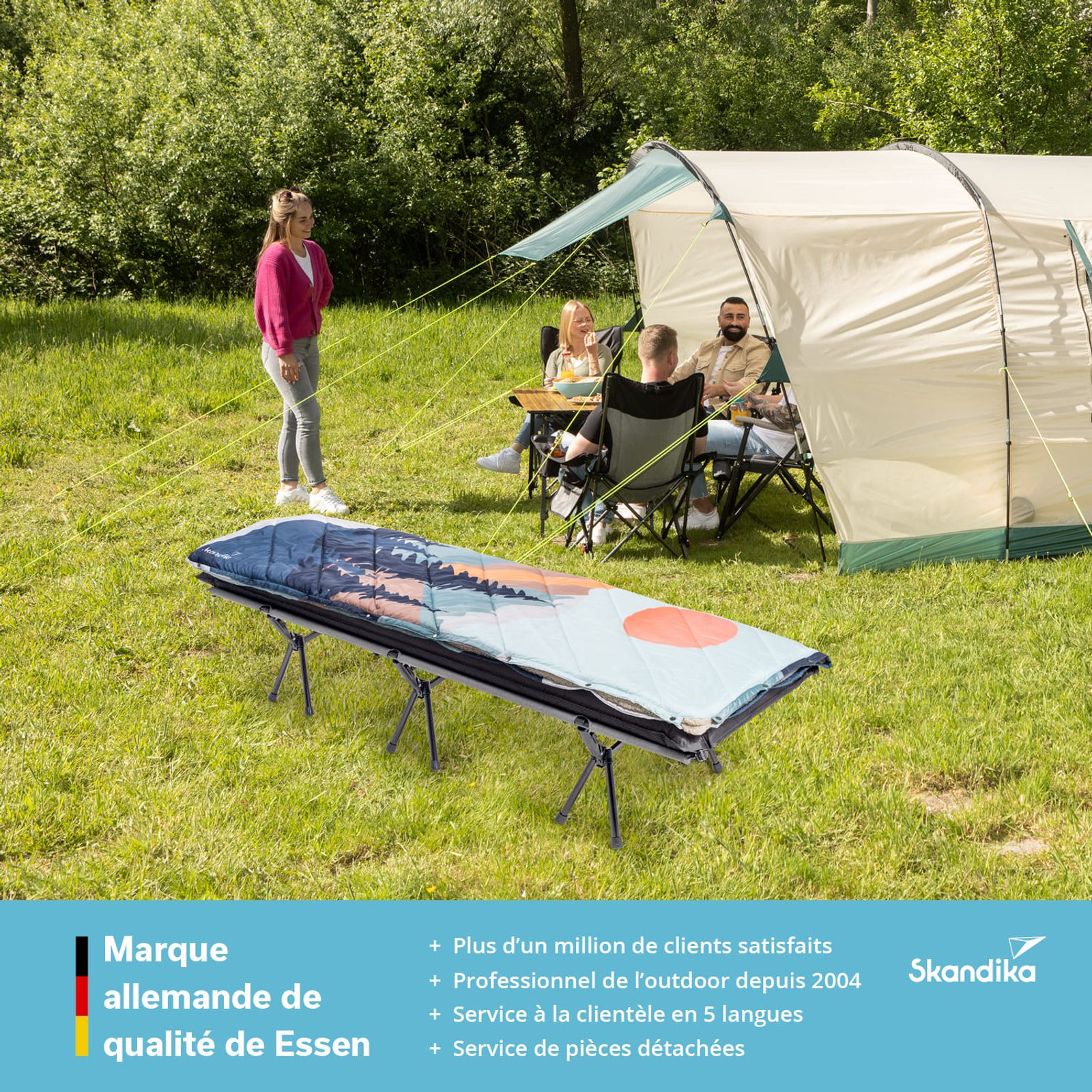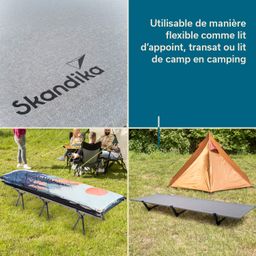 Le lit de camp Svalig de Skandika allie confort, stabilité et praticité en un seul produit. Point fort particulier : la hauteur réglable qui permet de se lever extra confortablement. Cette fonction fait du Svalig le choix optimal pour tous ceux qui attachent de l'importance à la flexibilité.