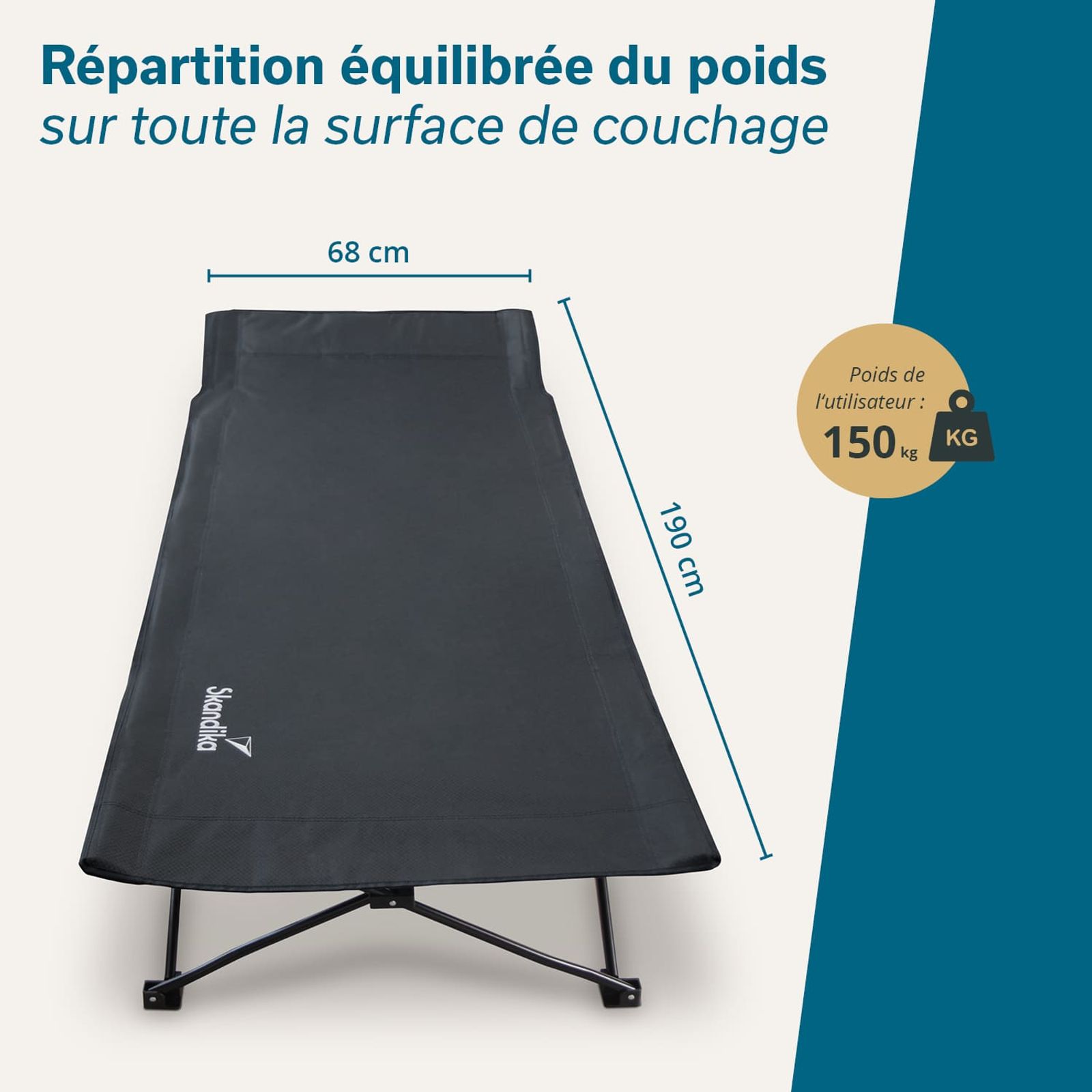 Lit de camp pliable avec cadre en acier robuste et sac de transport