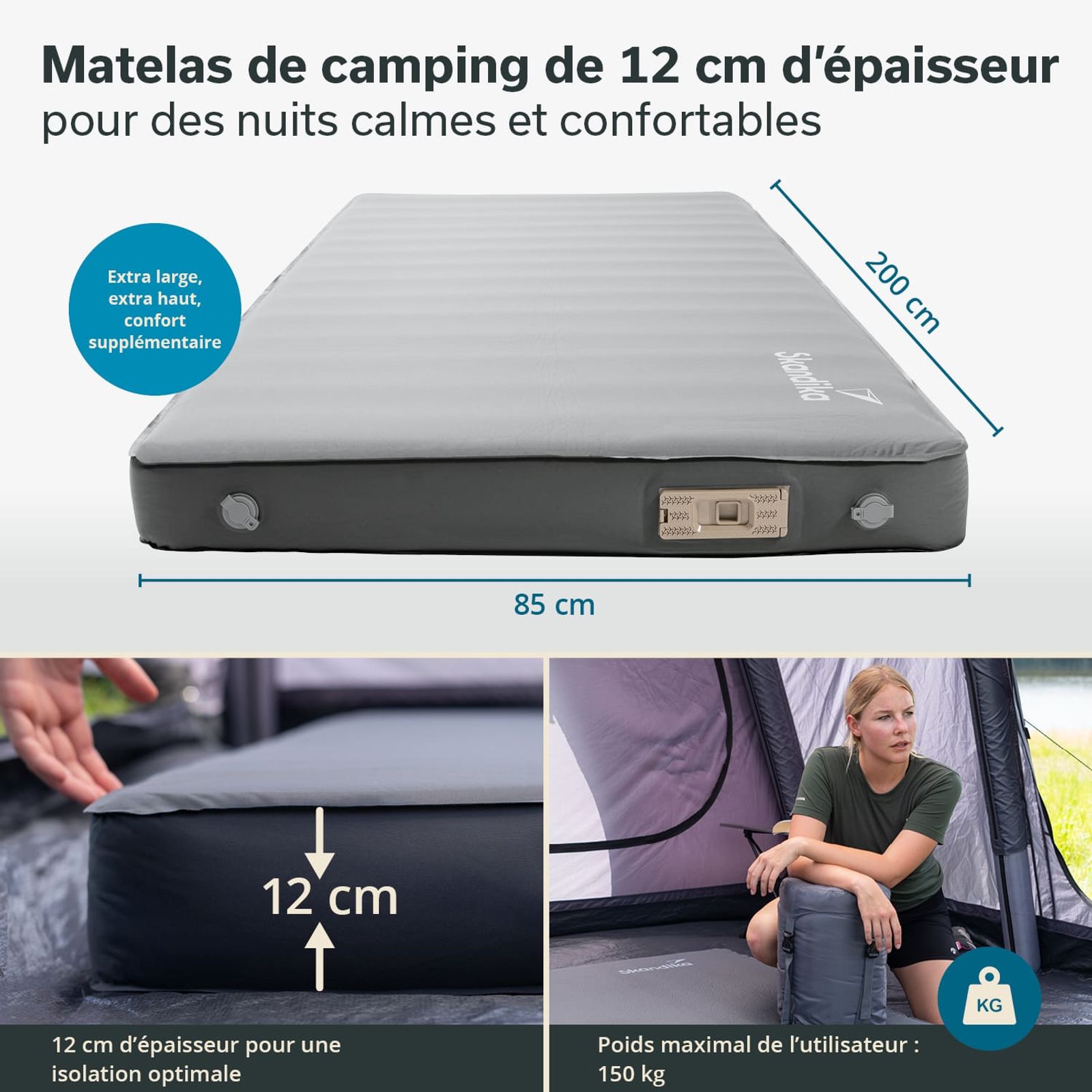 Matelas gonflable avec une grande surface de couchage et une hauteur de 12 cm