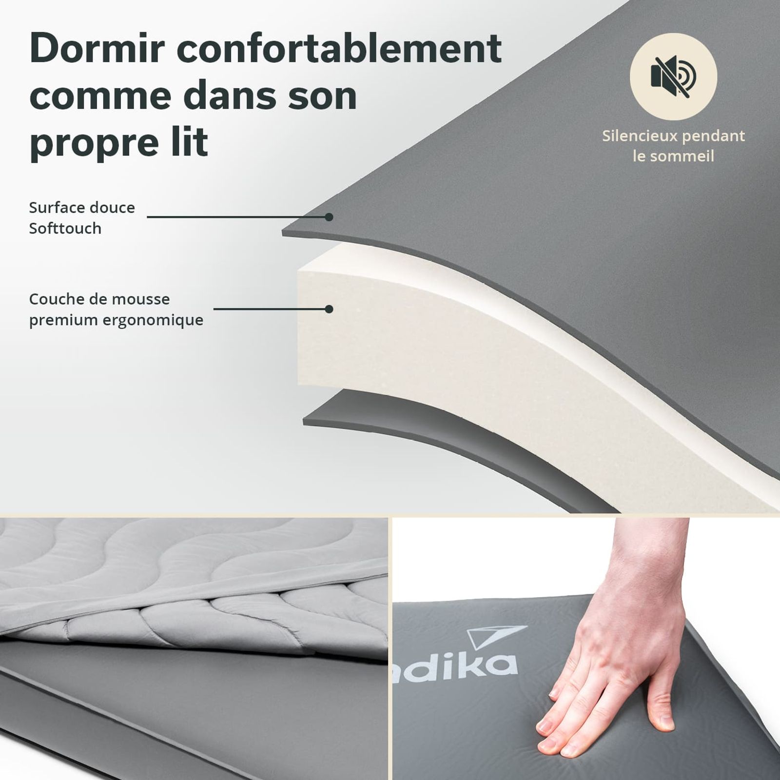- Matelas de camping résistant supportant jusqu'à 150 kg
