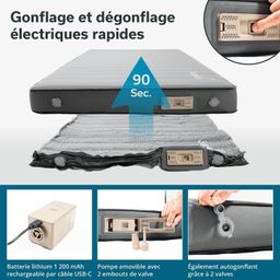 La pompe amovible rechargeable par USB-C gonfle rapidement le matelas sans avoir besoin d'une source d'alimentation et garantit une utilisation sans stress.