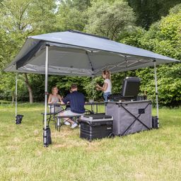 En camping, le Solvorn offre de la place pour un groupe de sièges, une cuisine de camping ou d'autres équipements. Il est également idéal comme aire de jeu pour les enfants. Les parois latérales protègent non seulement des insectes, mais empêchent également les enfants à quatre pattes de s'éloigner trop facilement du pavillon. A la maison, dans le jardin, le solvorn est placé au-dessus du buffet lors de la prochaine garden-party ou sert à faire de l'ombre dans l'allée lorsque l'on bricole sur sa voiture ou sa moto.
