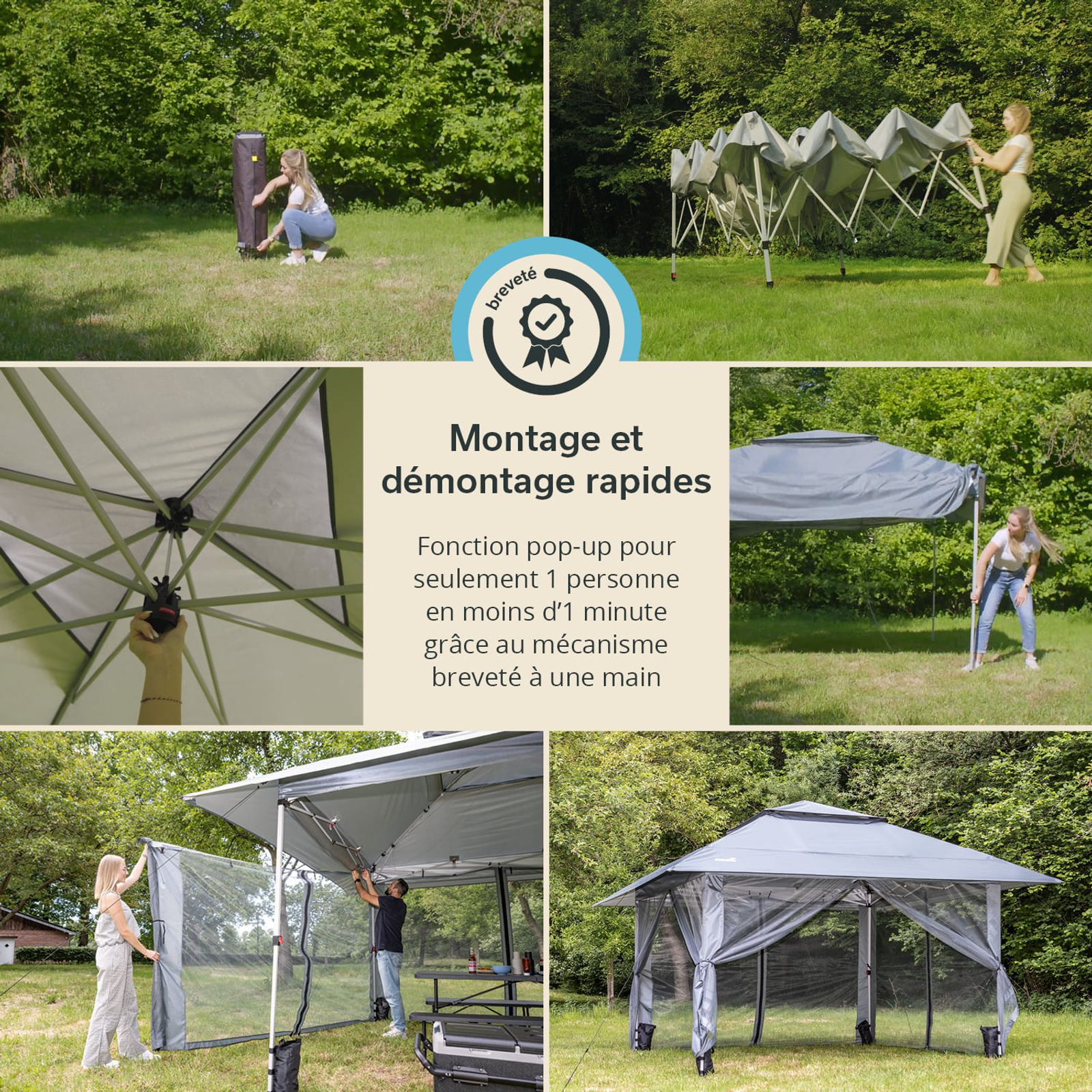 - Technique brevetée à une main pour un montage ultra-facile en moins d'une minute