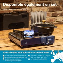 Le processus de cuisson est parfaitement soutenu grâce à une répartition innovante de la chaleur. Contrairement à de nombreux réchauds à gaz du commerce, la flamme du gaz du Skandika Brann ne provient pas seulement d'un anneau glandulaire extérieur, mais également de glandes situées à l'intérieur qui, ensemble, assurent une excellente répartition de la chaleur.