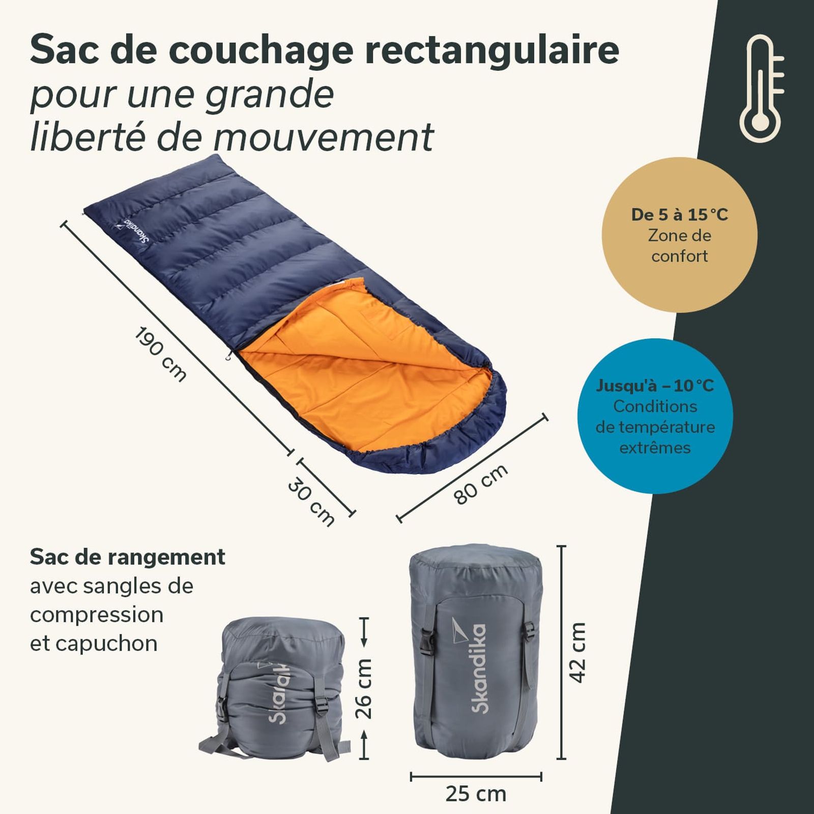 La collection de sacs de couchage Skandika Iceland se compose de sacs de couchage chauds et moelleux en forme de couverture et est parfaite pour tous ceux qui apprécient leur liberté de mouvement la nuit. La forme droite et rectangulaire offre beaucoup d'espace aussi bien au niveau des épaules supérieures que des pieds, et en même temps, la tête de lit confortable apporte un sentiment de sécurité supplémentaire, comme dans les sacs de couchage momie. Top équipés, chics dans leur design et surtout pratiques, nos sacs de couchage Iceland sont toujours un bon choix pour le camping, les festivals et les invités surprise.