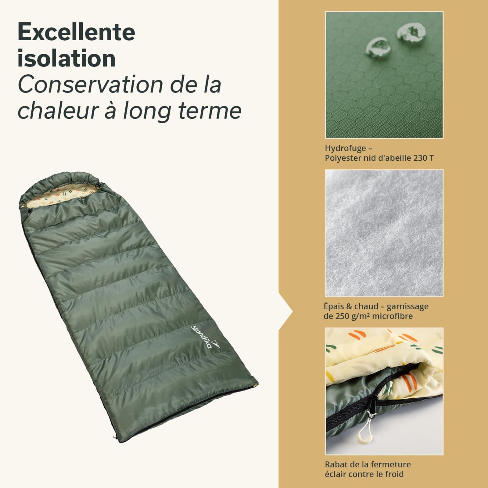 - Sac de couchage 3 saisons avec doublure intérieure confortable