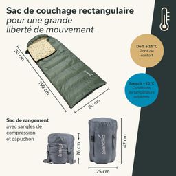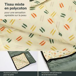 Sac de couchage à couverture avec température de confort entre 15 °C et 5 °C