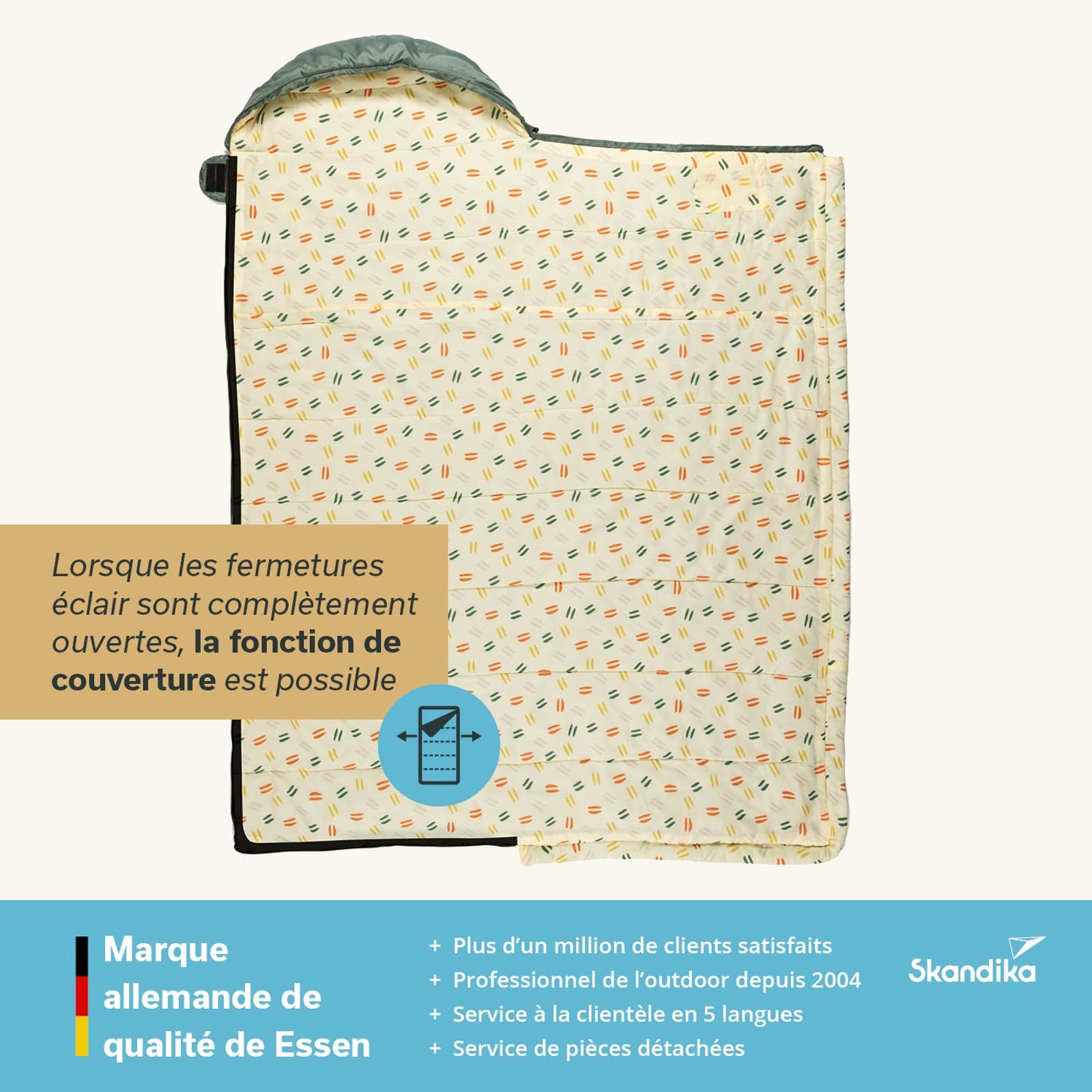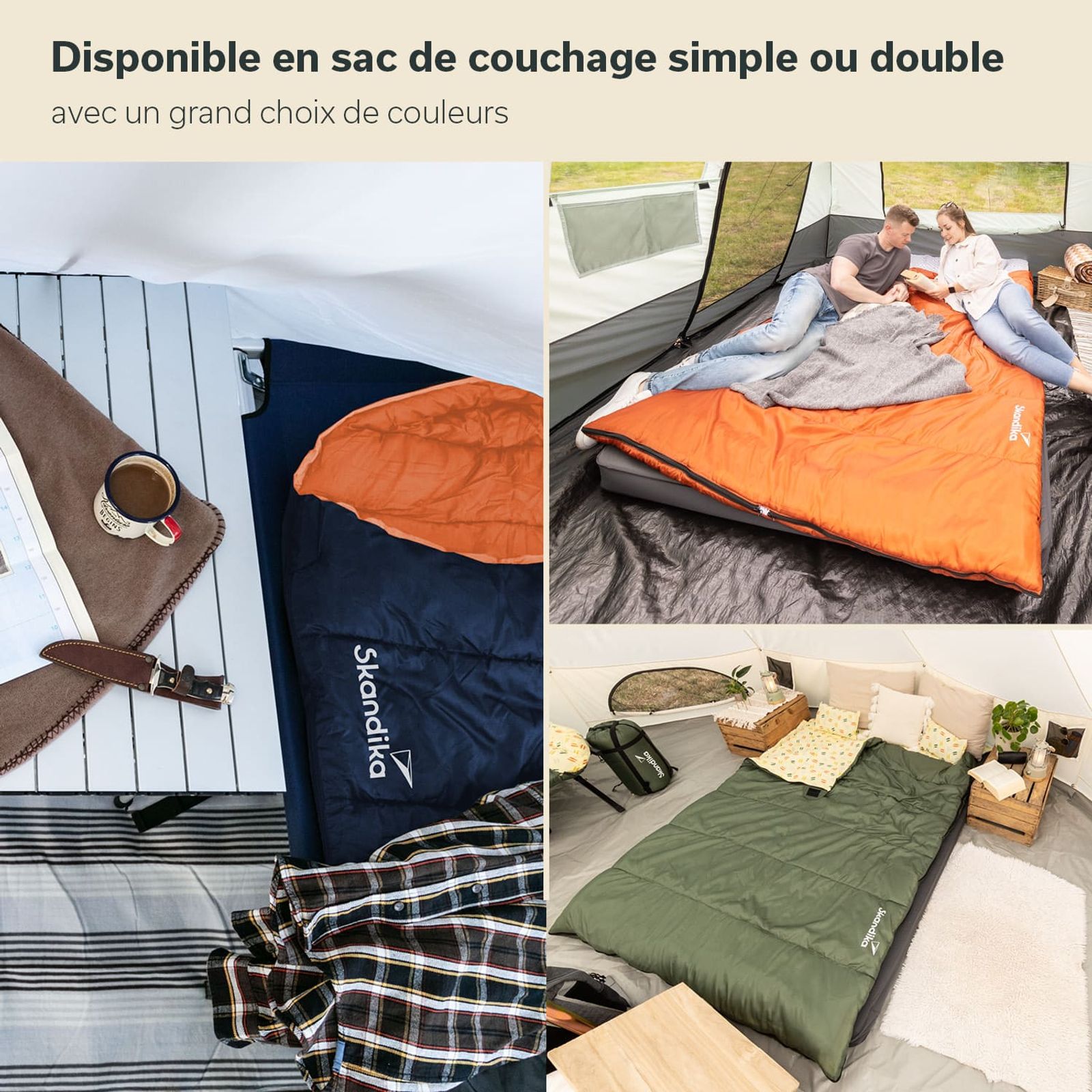 La collection de sacs de couchage Skandika Iceland se compose de sacs de couchage chauds et moelleux en forme de couverture et est parfaite pour tous ceux qui apprécient leur liberté de mouvement la nuit. La forme droite et rectangulaire offre beaucoup d'espace aussi bien au niveau des épaules supérieures que des pieds, et en même temps, la tête de lit confortable apporte un sentiment de sécurité supplémentaire, comme dans les sacs de couchage momie. Top équipés, chics dans leur design et surtout pratiques, nos sacs de couchage Iceland sont toujours un bon choix pour le camping, les festivals et les invités surprise.