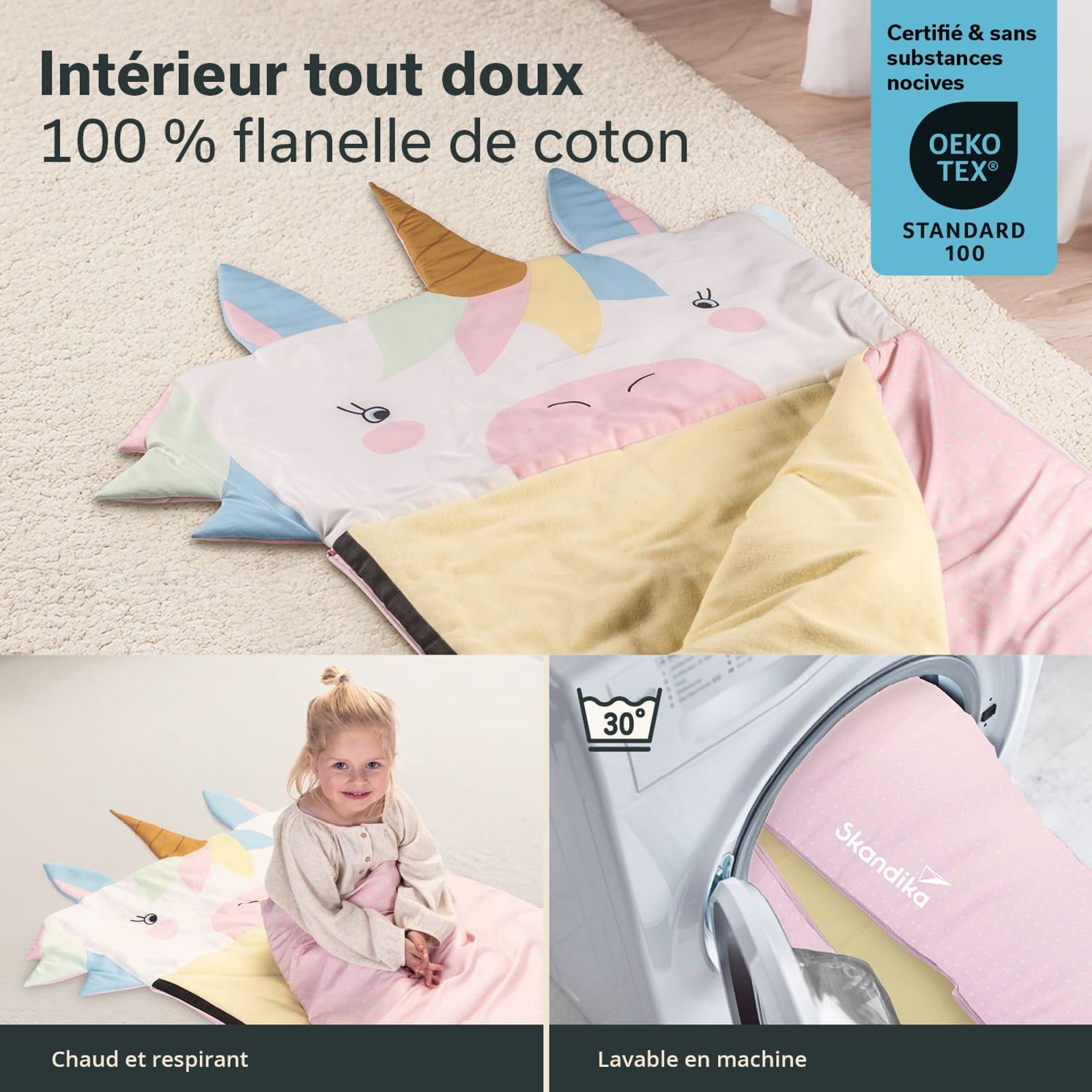 Sac de couchage rectangulaire avec doublure douce et design animalier coloré