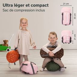 Le sac de rangement robuste est muni de bandes de compression pour que les enfants puissent réduire leurs bagages à une taille pratique. Grâce au design aux couleurs assorties aux sacs de couchage, ceux-ci sont facilement identifiables, même une fois emballés.