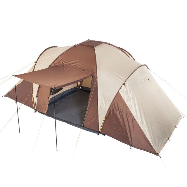 Tente pour 6 personnes avec trois cabines de couchage et store banne