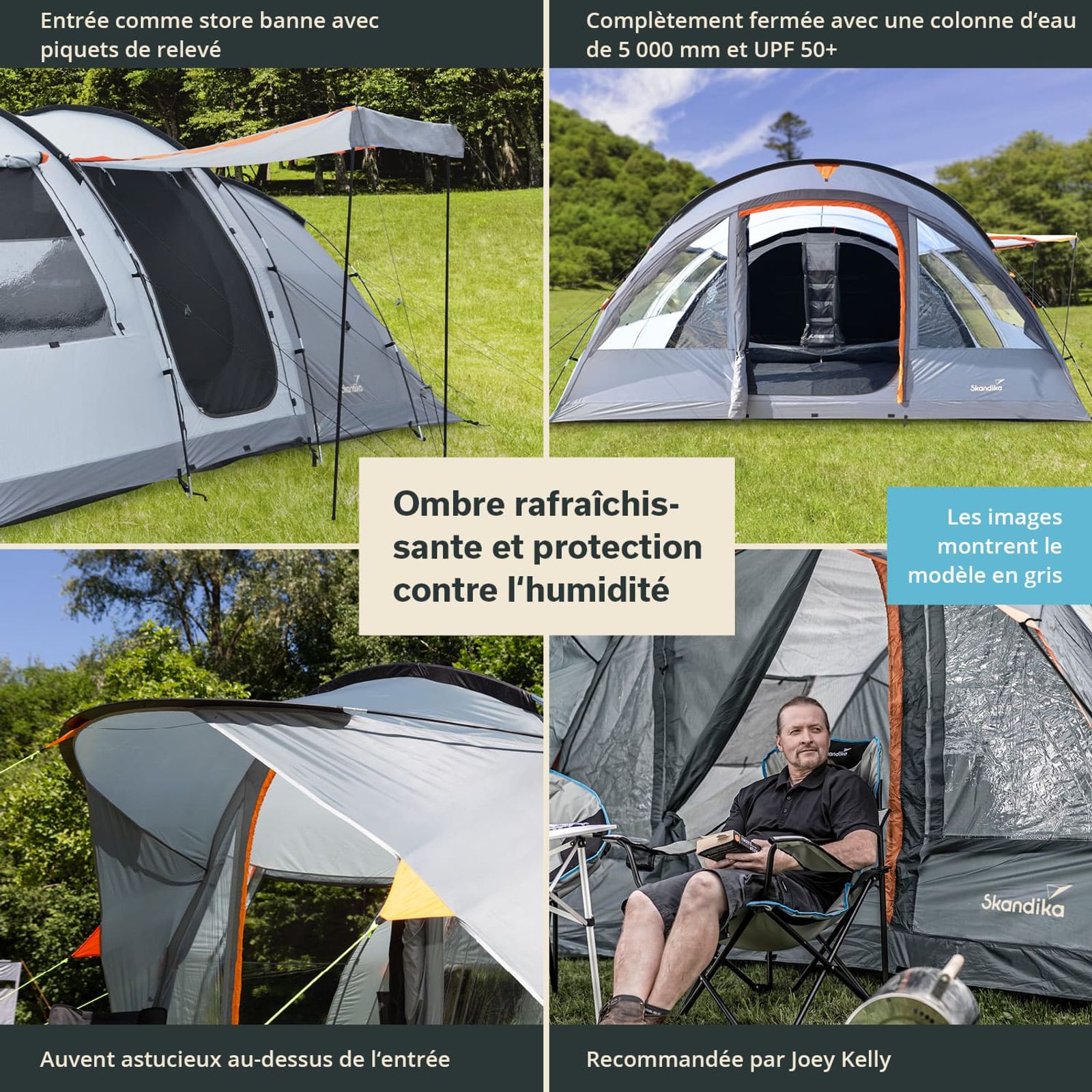 Notre tente Egersund très appréciée, avec son tapis de sol cousu, a été améliorée avec une version un peu plus grande dotée de la technologie Skandika Sleeper, un revêtement spécial de la toile de tente extérieure, et des cabines intérieures obscurcies. Cette tente solide et résistante aux intempéries est un excellent choix pour le camping des familles avec enfants ou des amis voyageant ensemble et qui apprécient le confort et les nuits tranquilles.