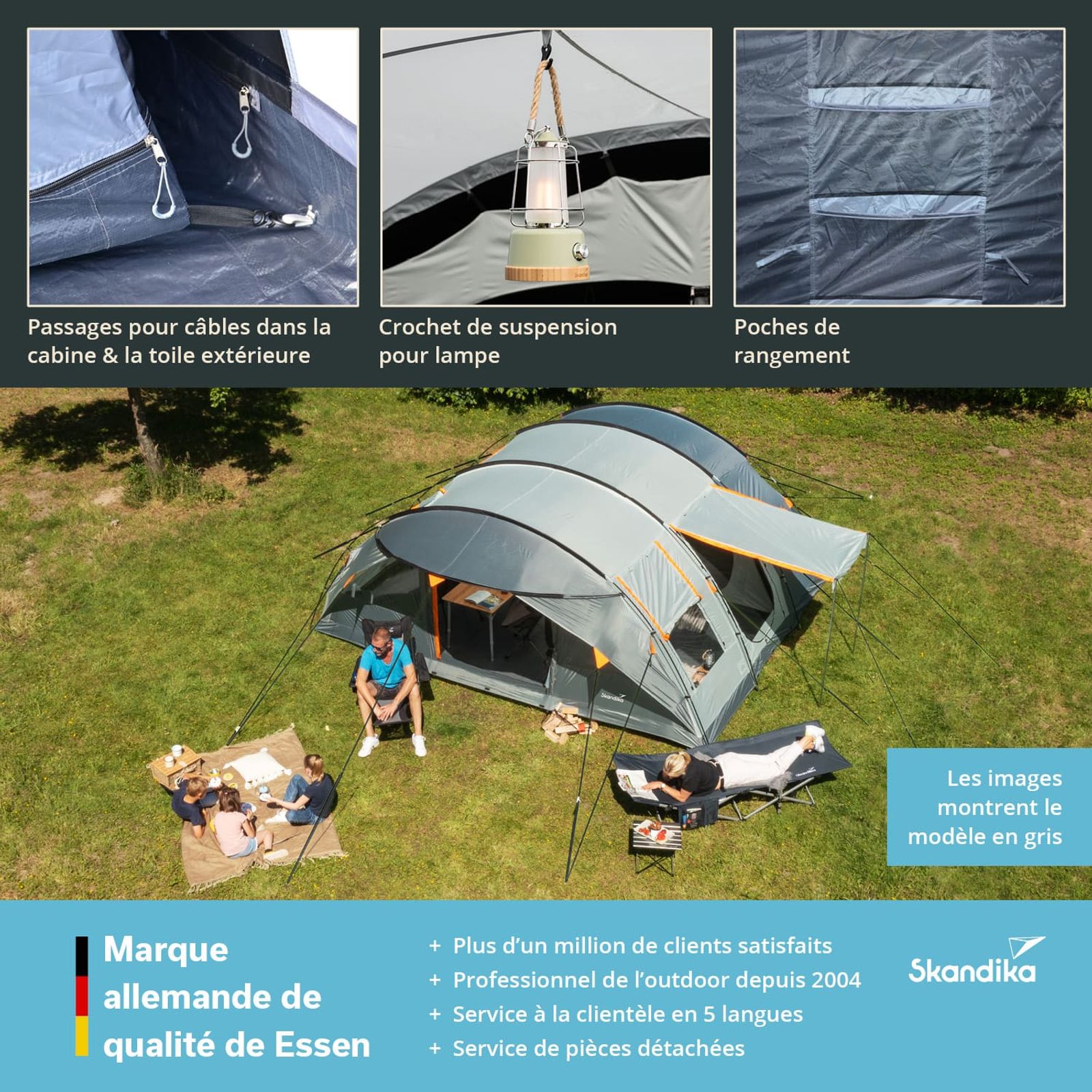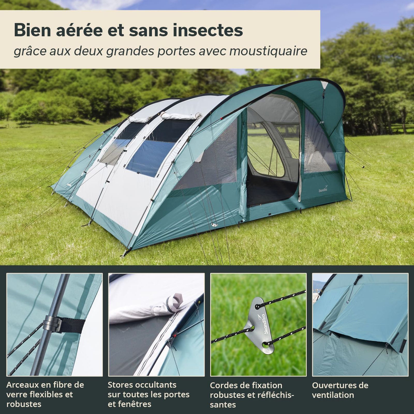 Tente 7 personnes avec cabines de couchage sombres et tapis de sol cousu