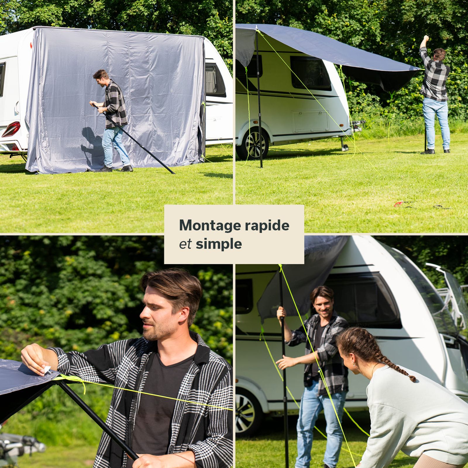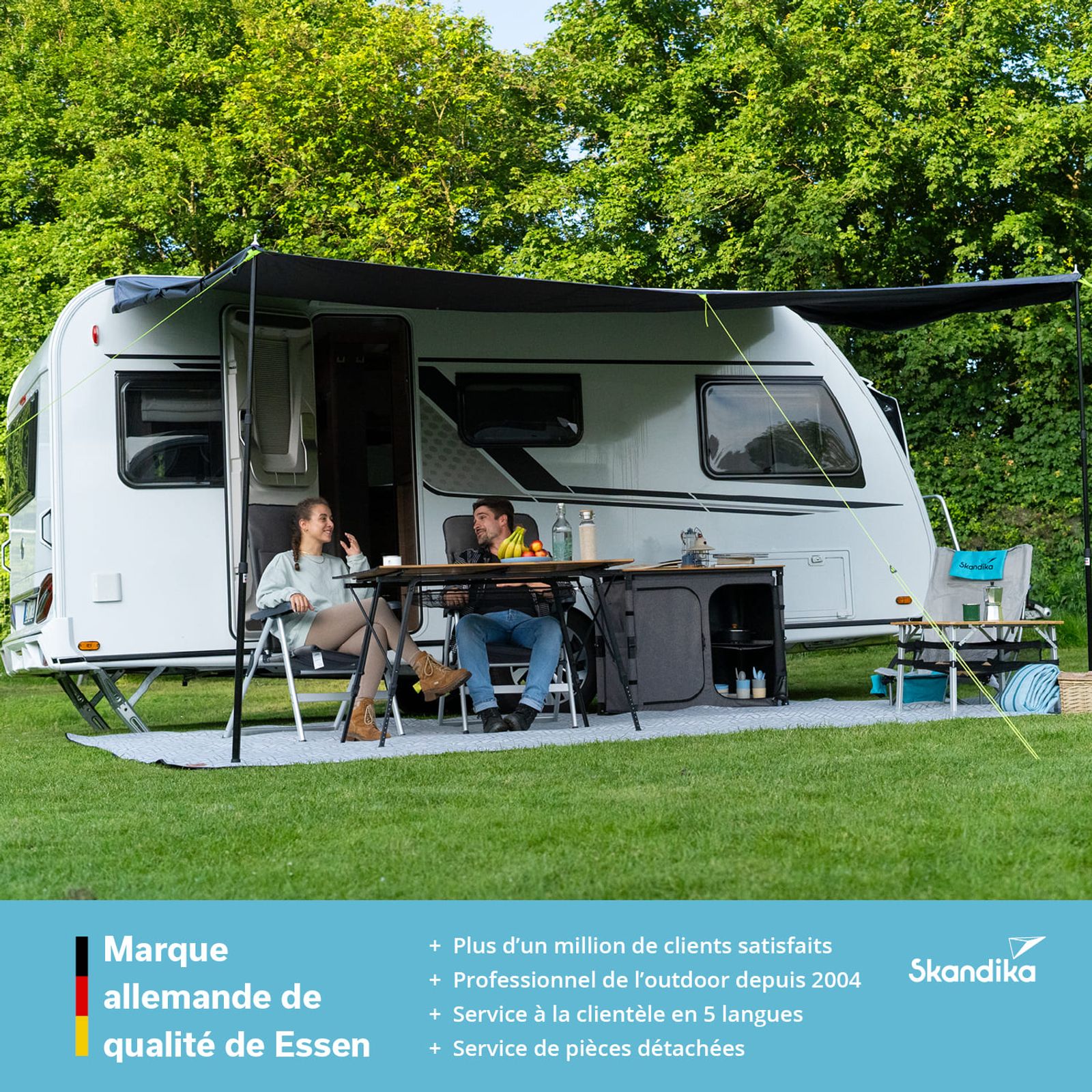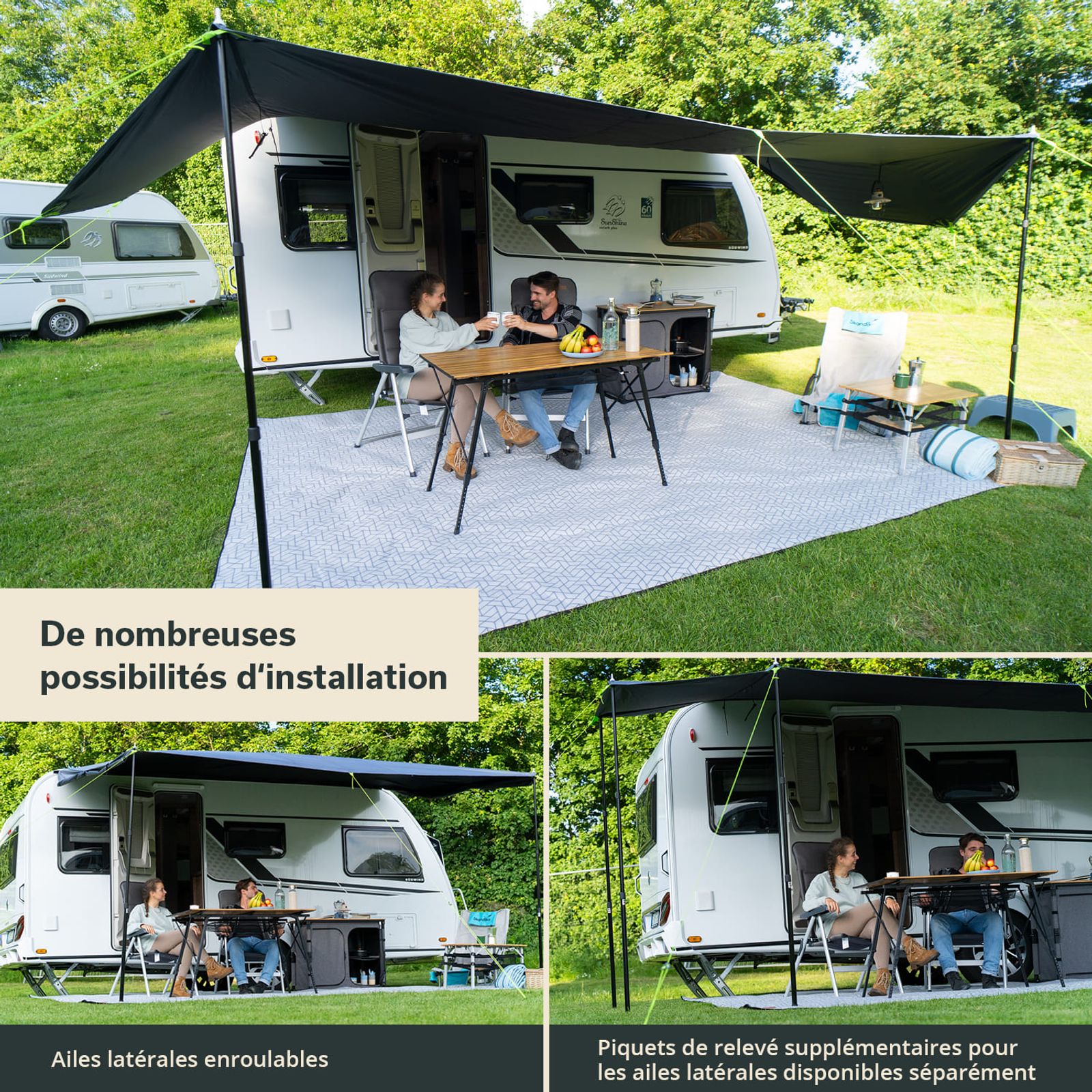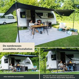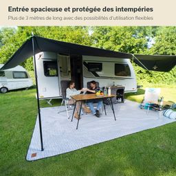 Le voile d'ombrage Skandika Freeway est la solution idéale pour les amateurs de camping qui souhaitent ajouter un espace extérieur protégé à leur caravane. Elle offre une protection fiable contre les intempéries et crée un espace supplémentaire pour passer des heures de détente en plein air. Grâce à son montage facile et à ses possibilités d'utilisation flexibles, c'est un accessoire indispensable pour chaque séjour en camping.- Pour une entrée de caravane à l'abri des intempéries