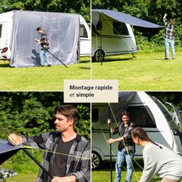 Si vous souhaitez une entrée de caravane protégée des intempéries, notre voile d'ombrage Freeway est fait pour vous ! Cet auvent astucieux se monte et se fixe en un clin d'œil et offre une protection contre le soleil & la pluie.
