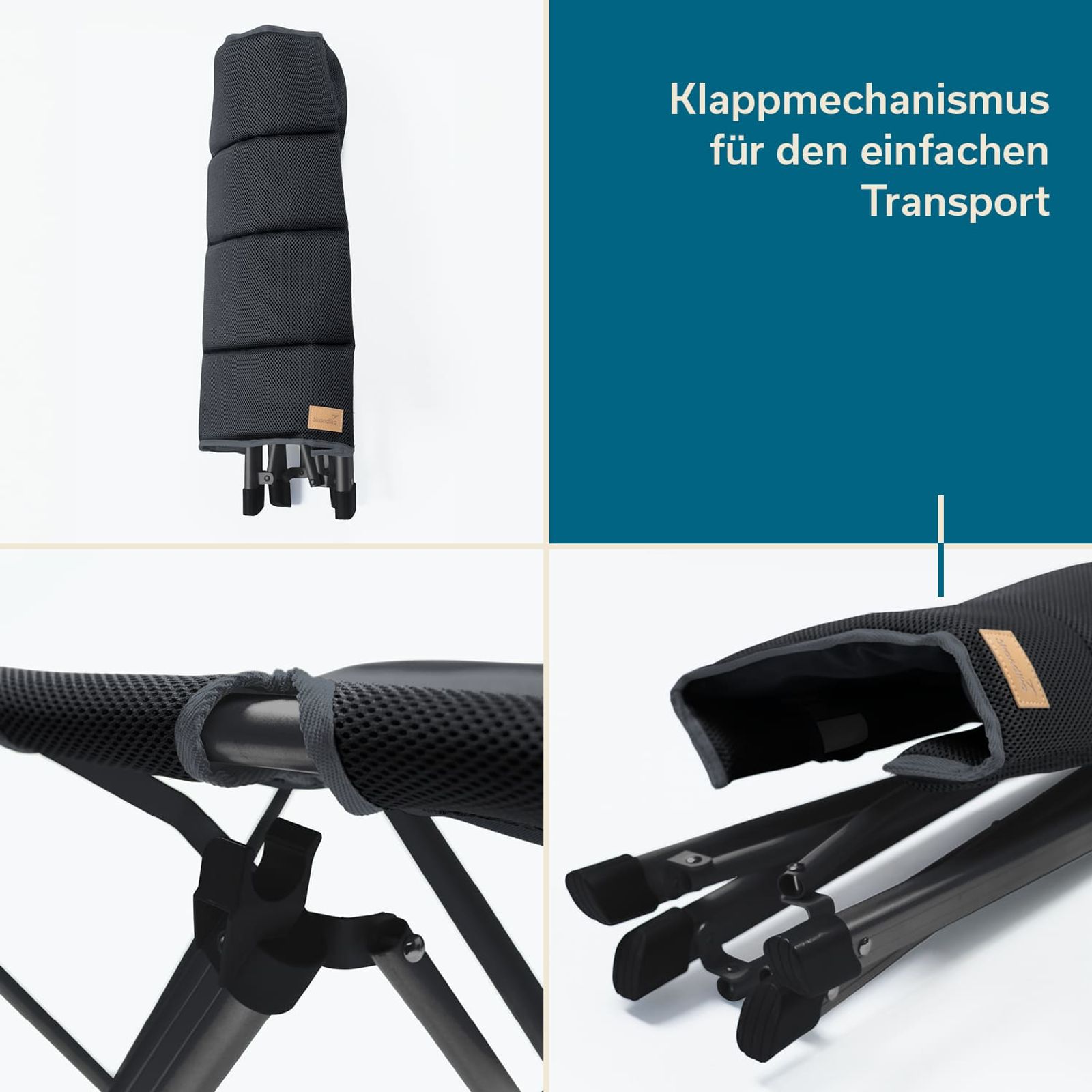 - Platzsparend, leicht und faltbar / pflegeleichter Mesh-Bezug / stabiles Aluminiumgestell