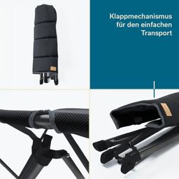 Nach dem Gebrauch kann der Lepola XL Hocker mit seinem Eigengewicht von nur 2,5 kg mühelos zusammengefaltet und platzsparend aufbewahrt oder zur nächsten Location getragen werden.