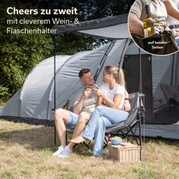 Ob zu zweit oder allein mit extra viel Platz – dieser Doppel-Campingstuhl lädt überall zum Entspannen ein.