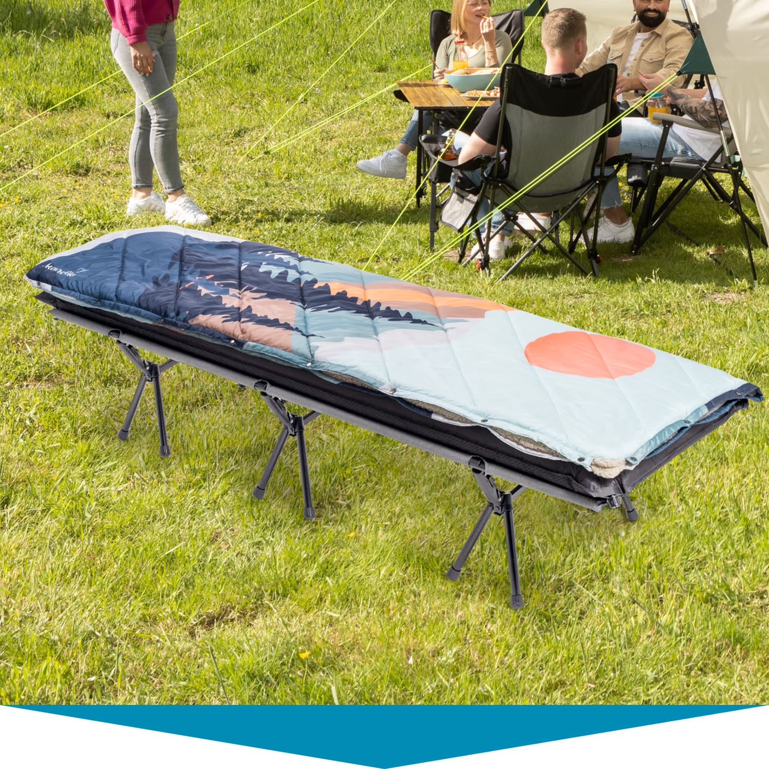 Eine praktische Tragetasche für sichere Aufbewahrung und einfachen Transport wird mitgeliefert. So ist die Liege jederzeit bereit für ein neues Campingabenteuer!