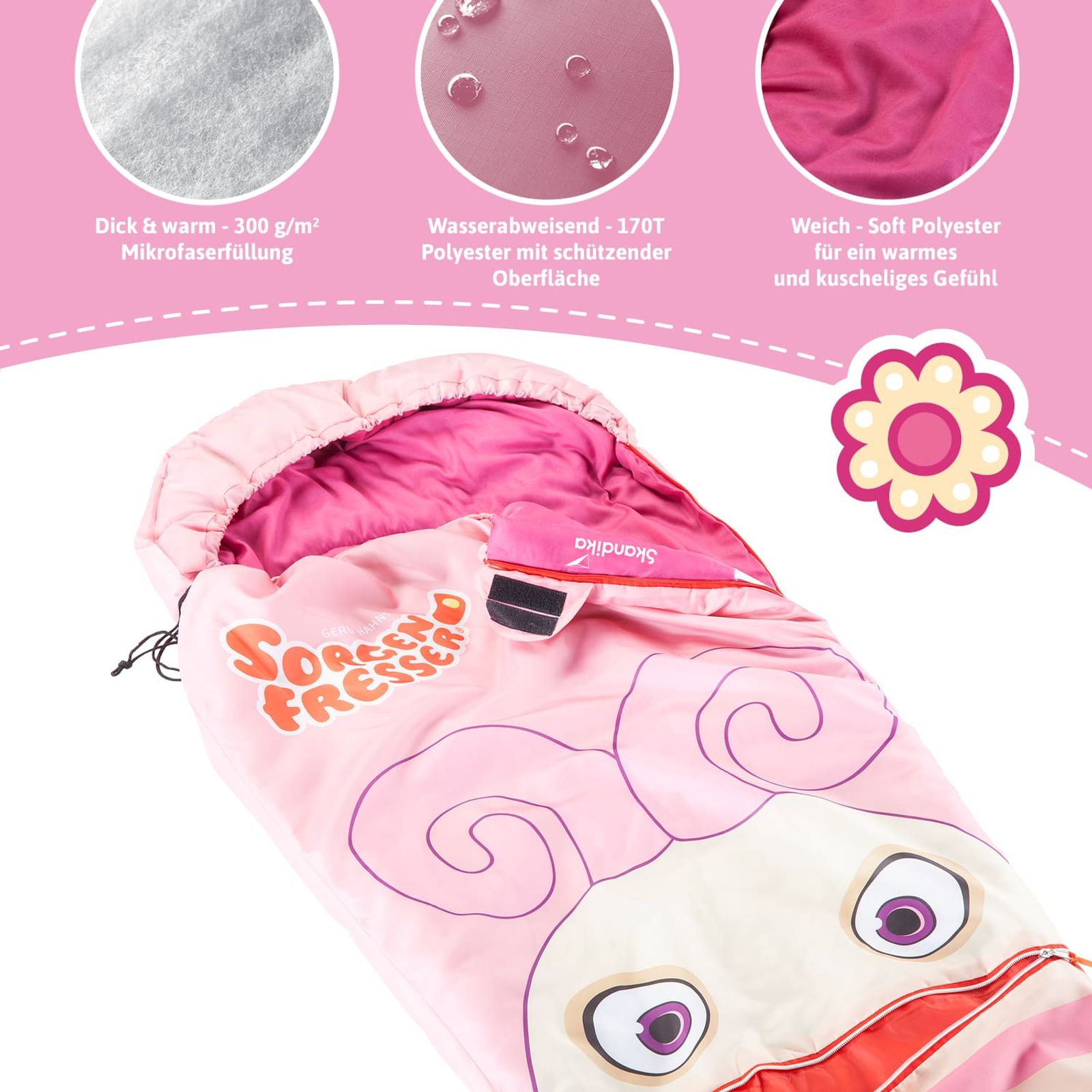 Sorgenfresser. Das sind die knuffigen kleinen Monster, die Kindern ihre Sorgen und Ängste abnehmen – und die in vielen bunten Modellen als kuschelig weiche Kinderschlafsäcke von Skandika erhältlich sind. Ob Flint der Pirat, Polli die Primaballerina oder einer ihrer Sorgenfresser-Freunde, für jeden Geschmack ist ein Sorgenfresser-Kumpel dabei. Das pfiffige Design ist jedoch lange nicht alles, was diese Sorgenfresser zu bieten haben – sie werden ebenfalls allen Ansprüchen eines qualitativ hochwertigen Kinderschlafsacks gerecht.