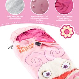 Mit Mikrofaser-Füllung für eine gute Isolation und angenehme Wärme im Komfortbereich von 12 – 3 °C. Perfekt geeignet nicht nur für Übernachtungen im Kindergarten oder bei Oma und Opa, sondern auch für „richtiges" Camping, zu Hause im Garten und auf dem Campingplatz.