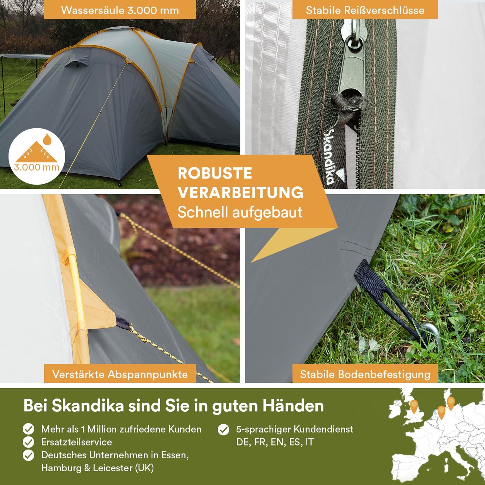 - Mit passendem Zeltboden für den großen Wohnbereich, der viel Platz und Stauraum bietet