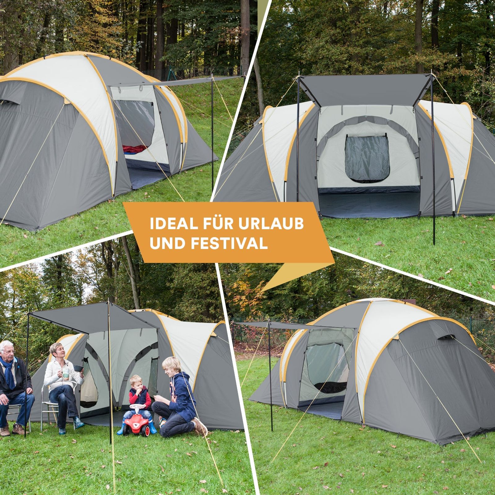- Großzügiges 6-Personen Kuppelzelt mit 3 Schlafkabinen für mehr Privatsphäre