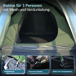 3-Personen-Zelt mit dunkler Schlafkabine und geringem Gewicht