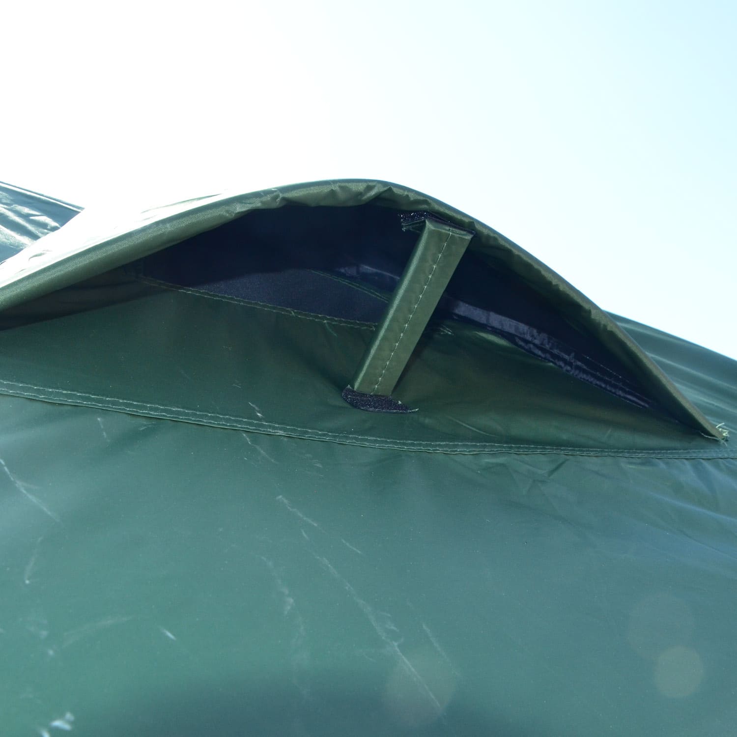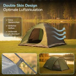- Einfacher Aufbau: Gestänge aufstellen, Kabine festklipsen, Außenzelt überwerfen – fertig!