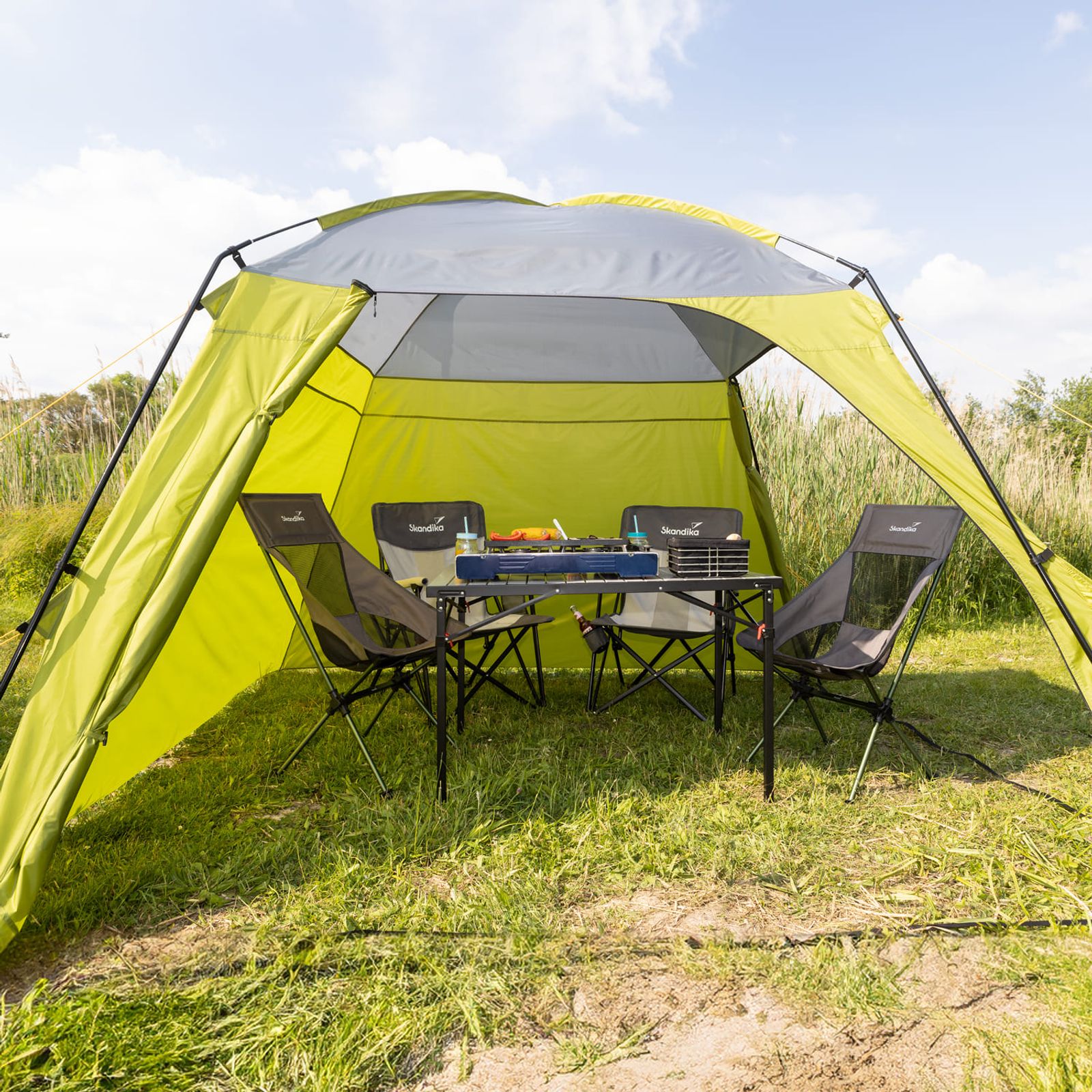 Wer auf der Suche nach einem geräumigen, stabilen und flexibel nutzbaren Pavillon ist, wird beim Skandika Pavillon Inari 300 fündig. Dieser Pavillon macht sowohl beim Camping als auch im heimischen Garten eine sehr gute Figur. Er ist mit nur wenigen Handgriffen aufgebaut und lässt sich leicht transportieren.