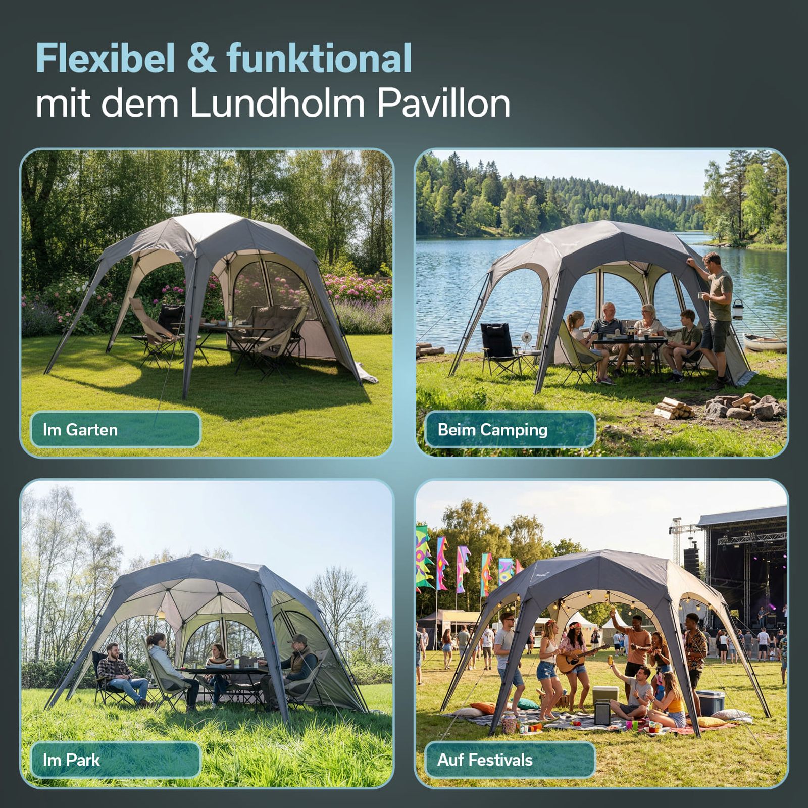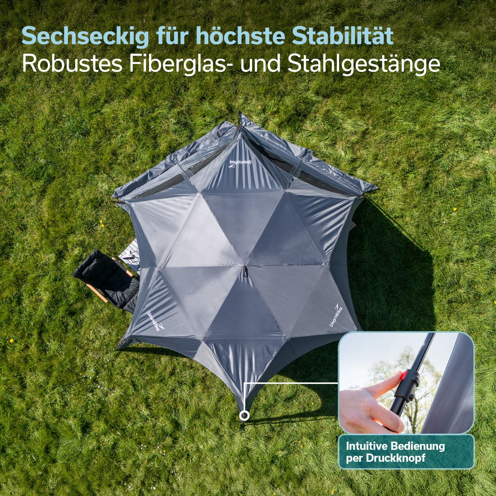 - Großer Pavillon mit sechseckiger Grundfläche und innovativer Quick-Start Funktion