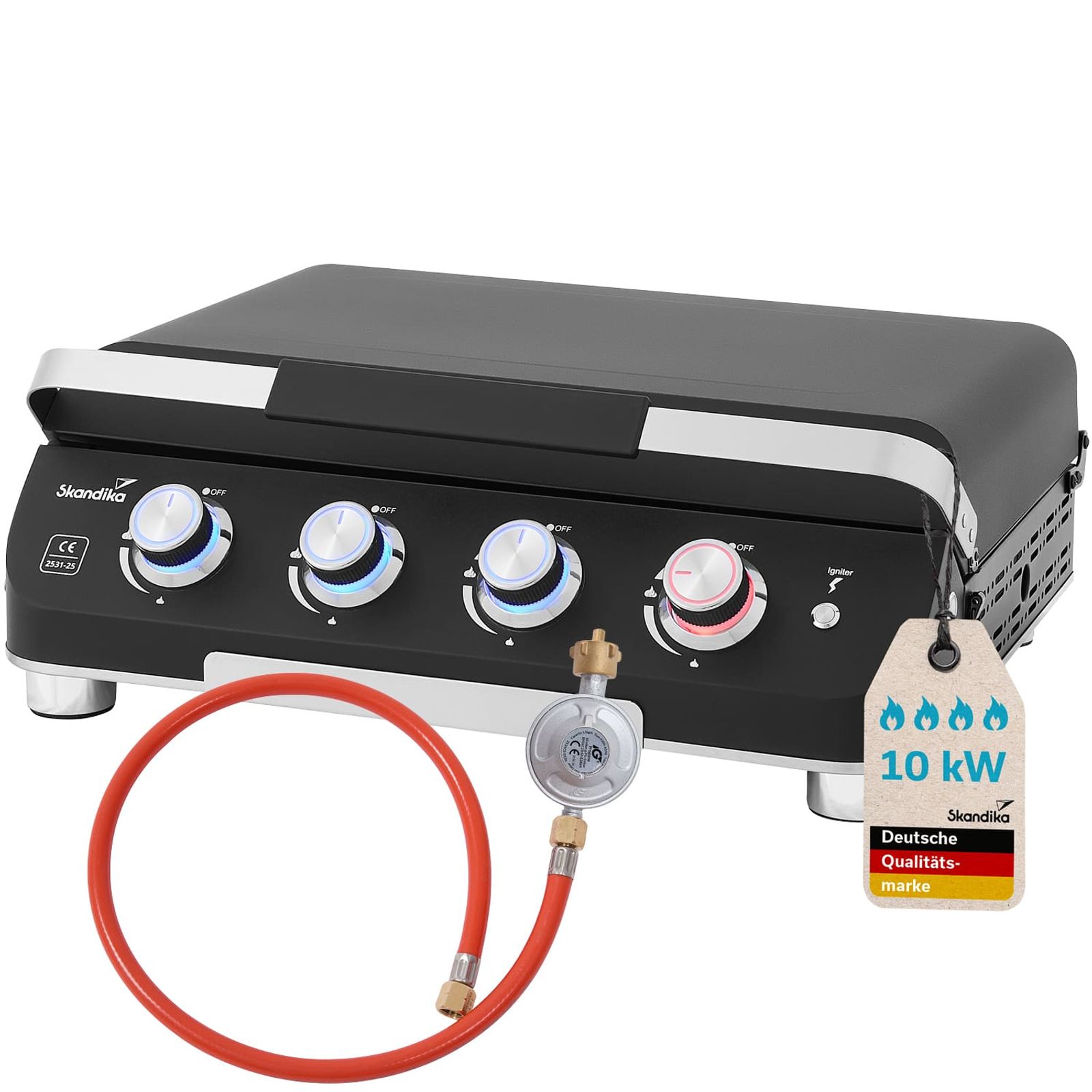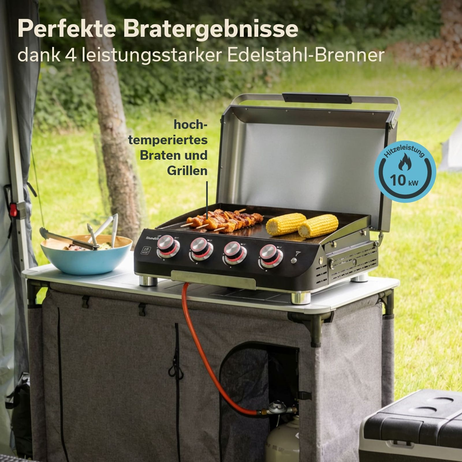- Hervorragende Gesamthitzeleistung von 10 kW (4 Brenner mit je 2,5 kW Leistung)