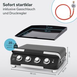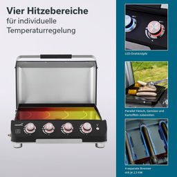 - 4-Brenner Plancha Grill für eine gleichmäßige Verteilung der Hitze über die gesamte Grillplatte